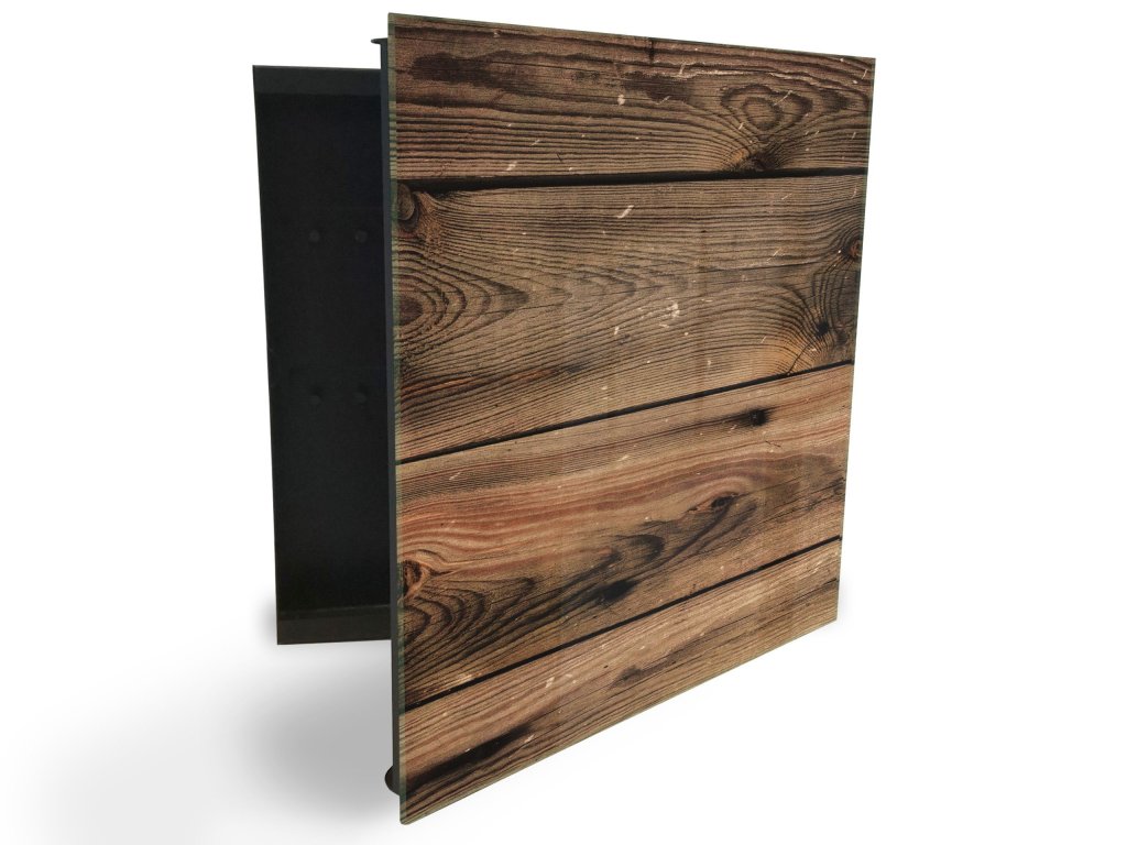 Glasdekor skříňka na klíče - tmavé dřevěné desky