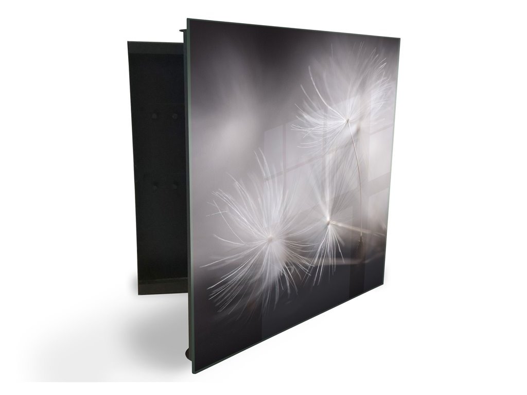 Glasdekor skříňka na klíče - tmavě šedé chmýří pampelišky