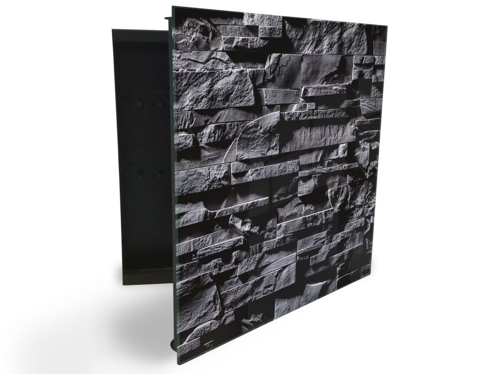 Glasdekor skříňka na klíče - tmavě šedý obklad kámen