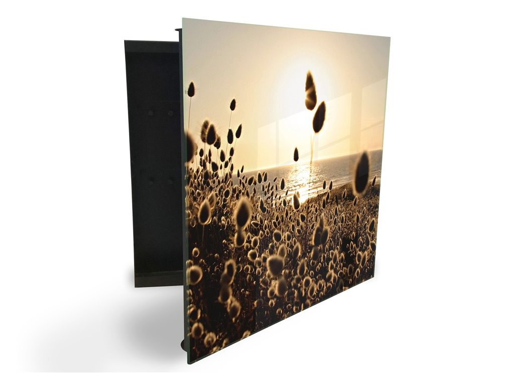 Glasdekor skříňka na klíče - traviny v západu slunce u moře