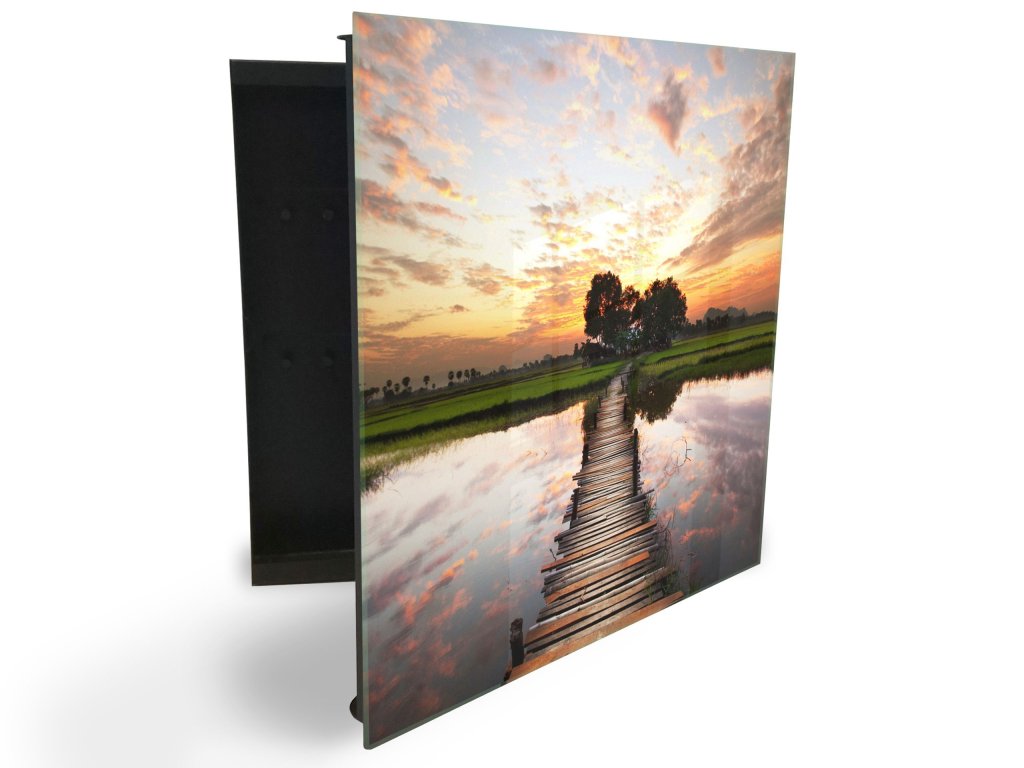 Glasdekor skříňka na klíče - tropická řeka v západu slunce