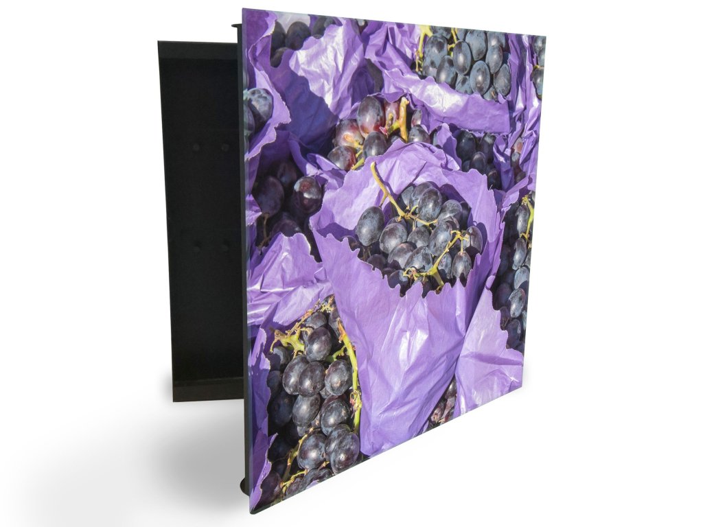 Glasdekor skříňka na klíče - trsy červeného vína v obalu