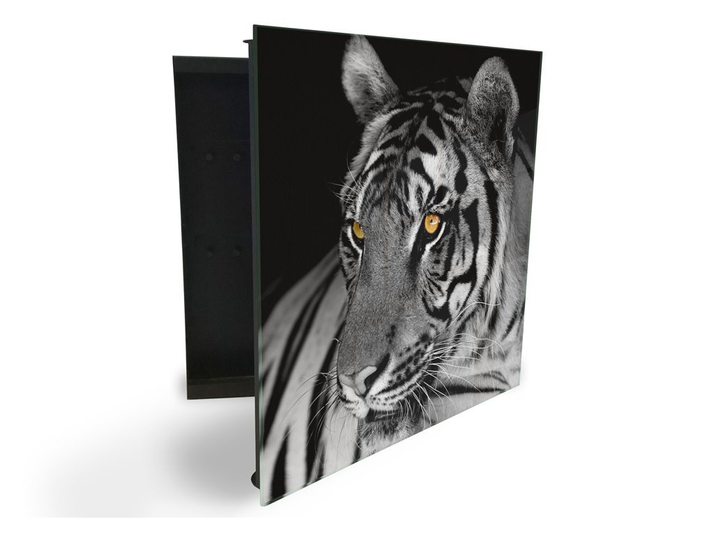 Glasdekor skříňka na klíče - tygr bílý