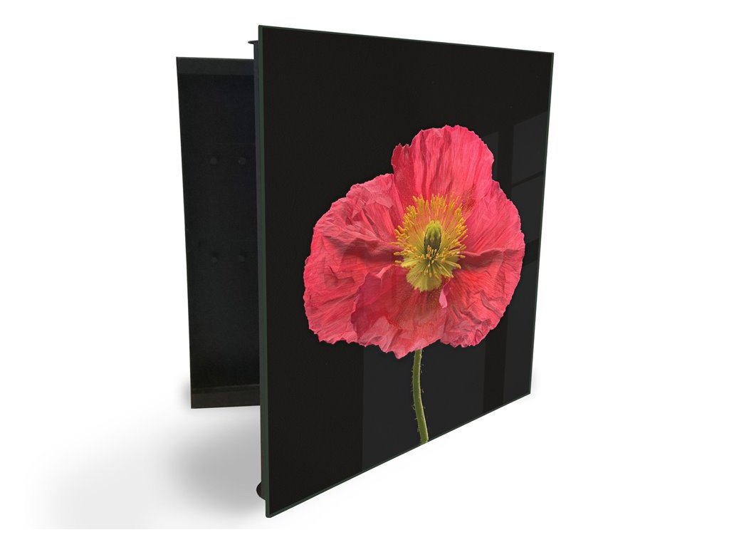 Glasdekor skříňka na klíče - vlčí mák na černém pozadí