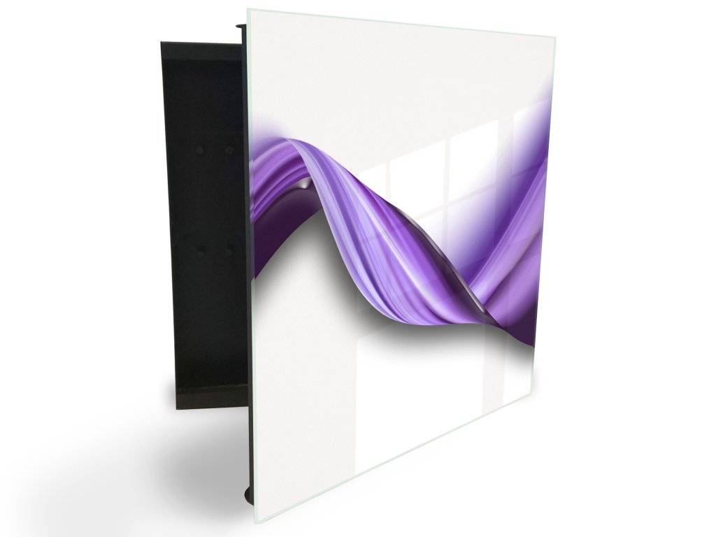 Glasdekor skříňka na klíče - zakroucená fialová vlna na bílém