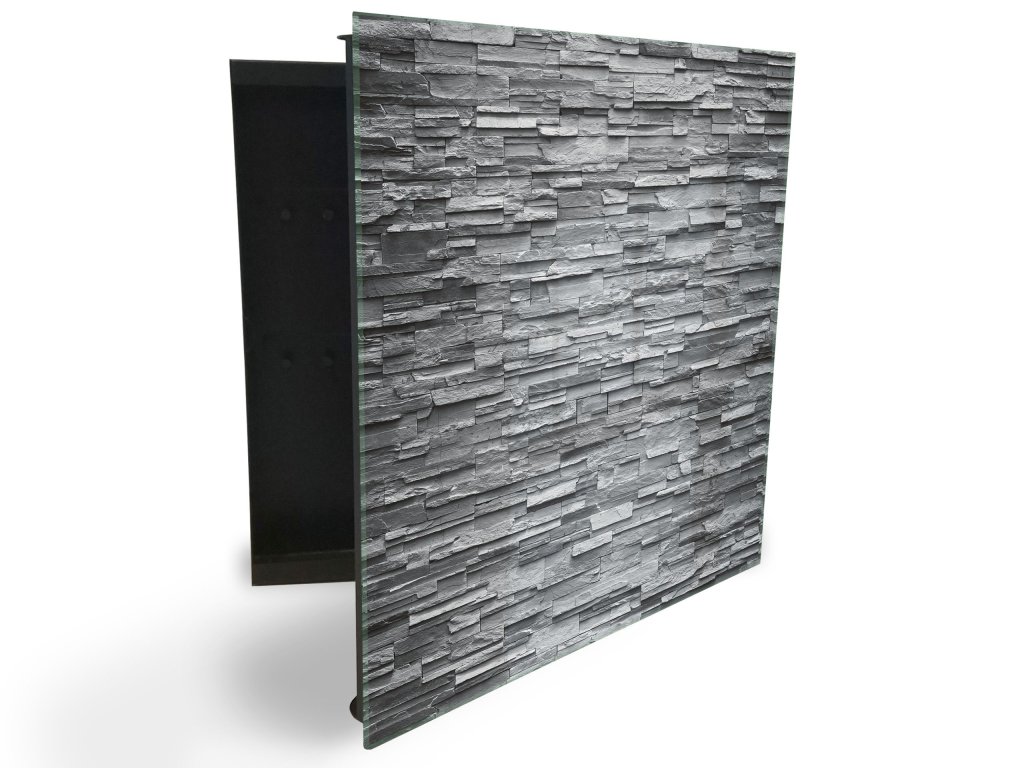 Glasdekor skříňka na klíče - zeď štípaný šedý kámen