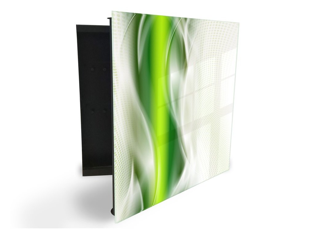 Glasdekor skříňka na klíče - zelená abstraktní vlna