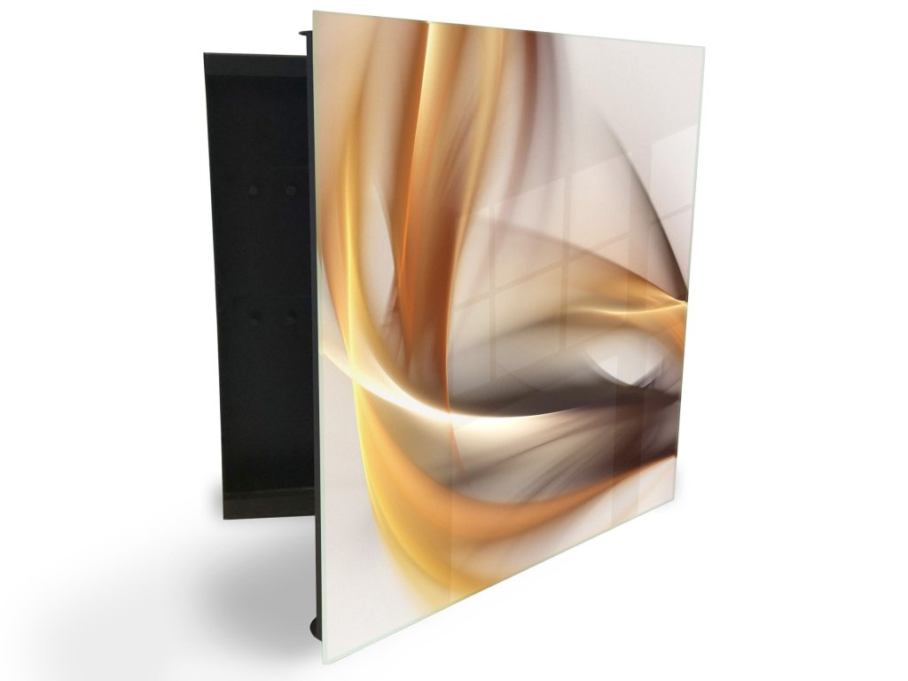 Glasdekor skříňka na klíče - zlato hnědá abstraktní vlna