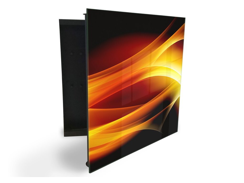 Glasdekor skříňka na klíče - zlato žlutá abstraktní vlna