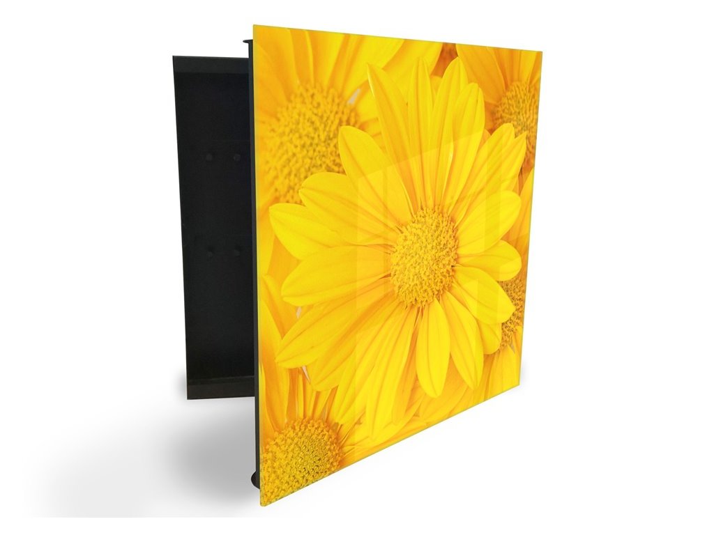 Glasdekor skříňka na klíče - žluté květy pozadí