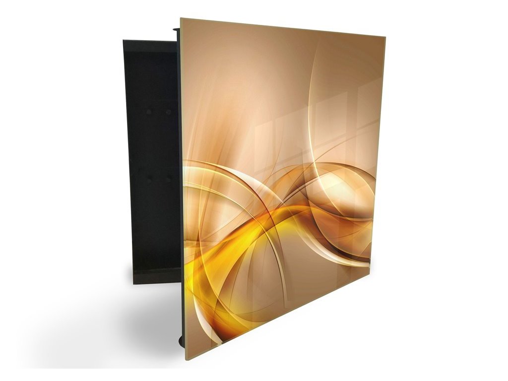 Glasdekor skříňka na klíče - žluto béžová vlna abstrakt