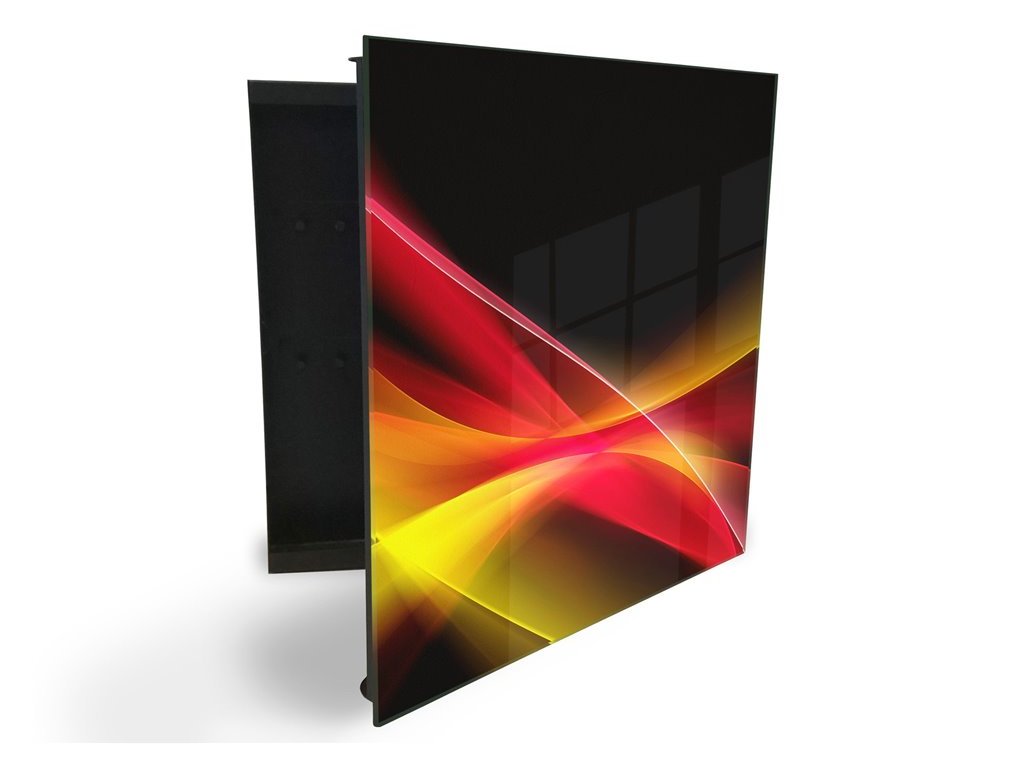 Glasdekor skříňka na klíče - žluto růžová abstrakce na černém