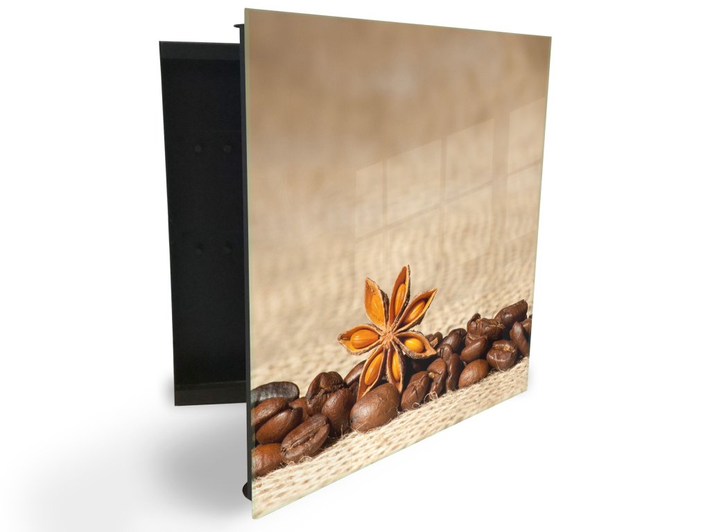 Glasdekor skříňka na klíče - zrna kávy, badyán na tkanině