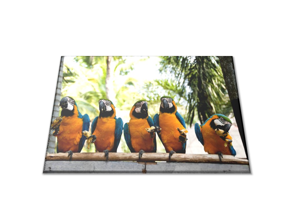 Krájecí podložka papoušek ara ararauna s banánem