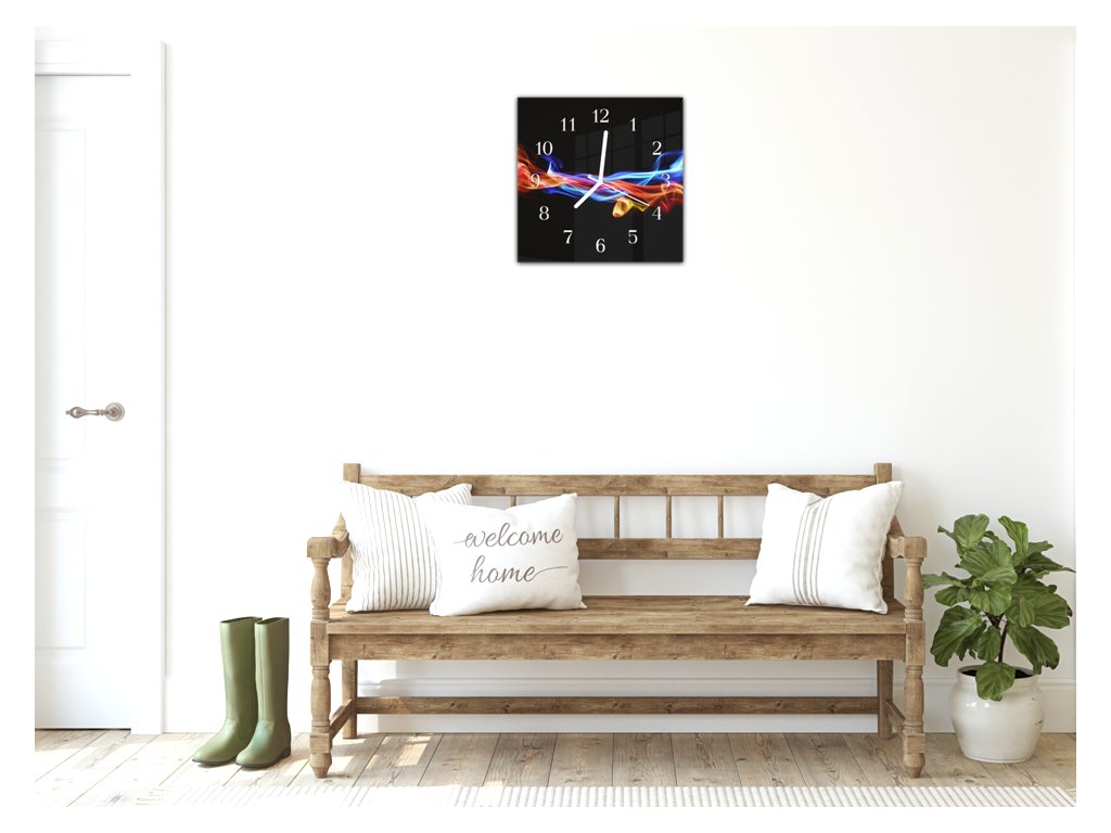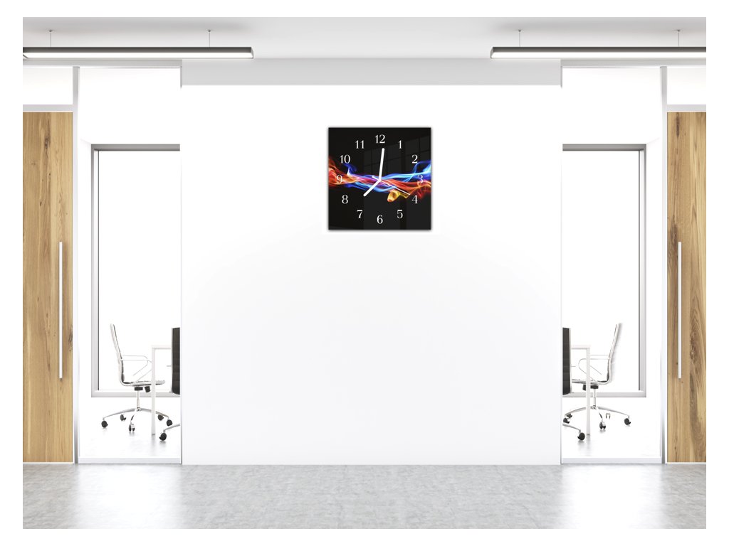Nástěnné hodiny 30x30cm abstraktní barevná vlna na černém