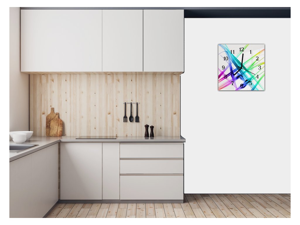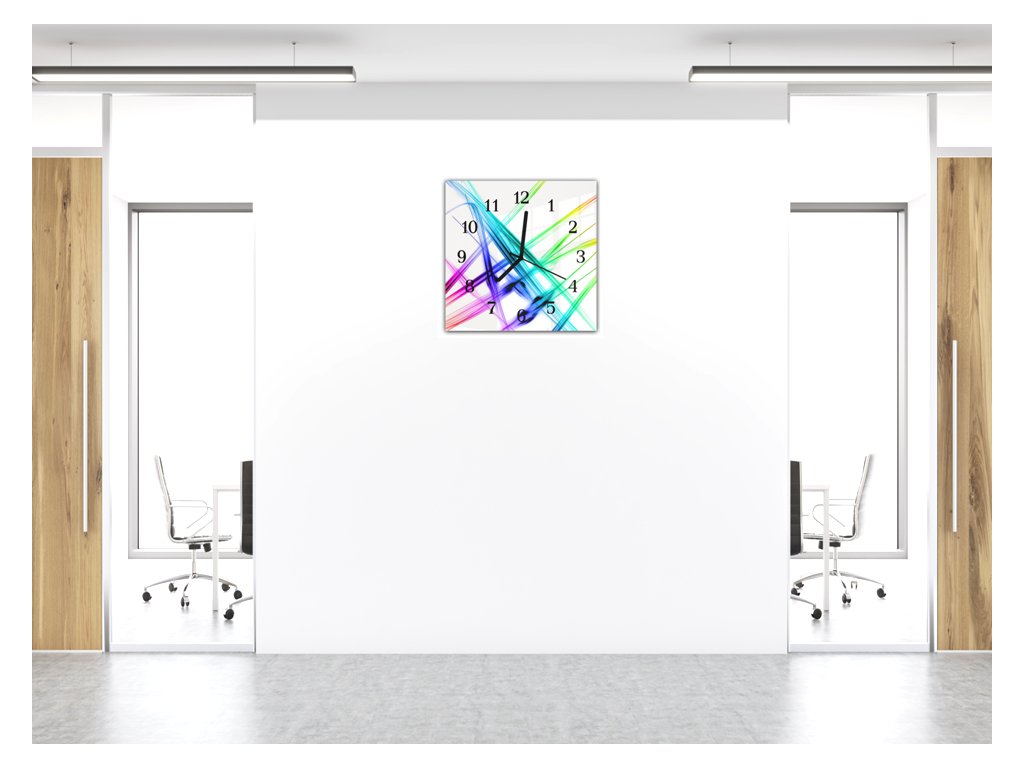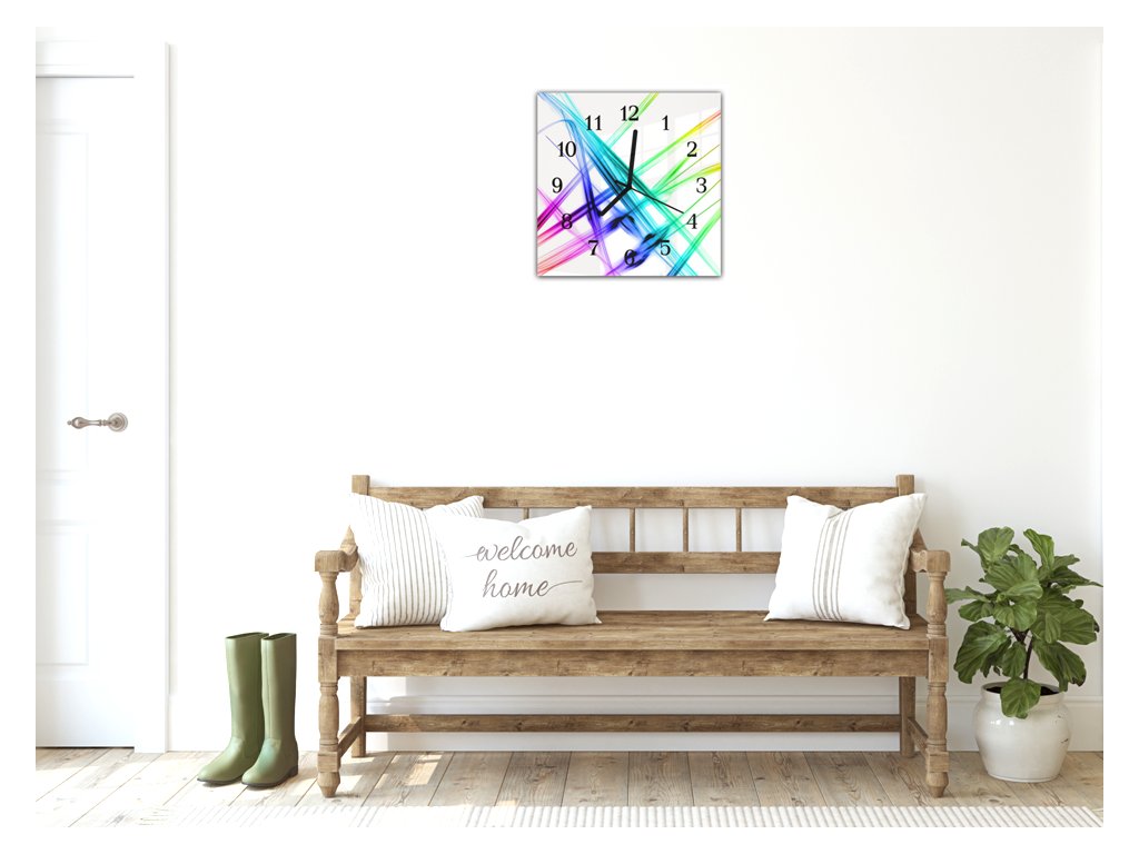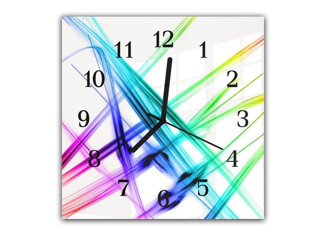 Nástěnné hodiny 30x30cm abstraktní barevné paprsky