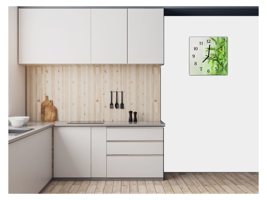 Nástěnné hodiny 30x30cm bambus nad hladinou vody