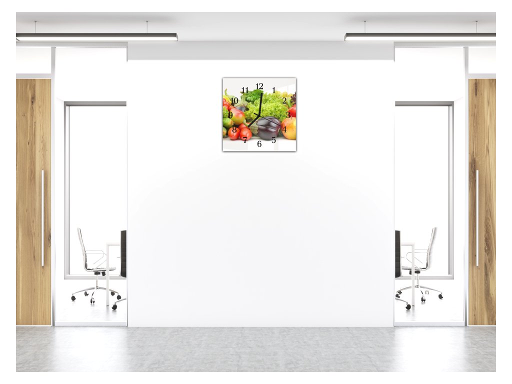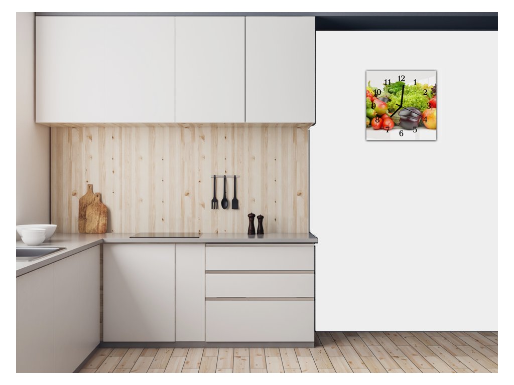 Nástěnné hodiny 30x30cm barevná čerstvá zelenina
