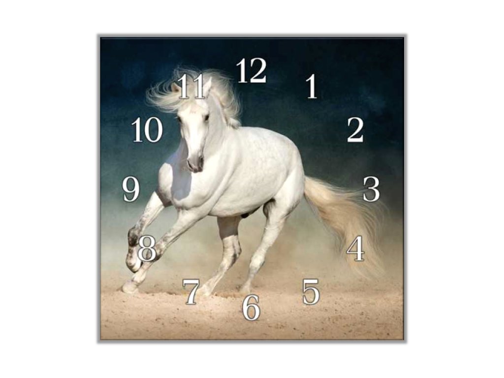 Nástěnné hodiny 30x30cm bílý kůň v prachu