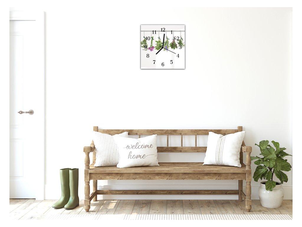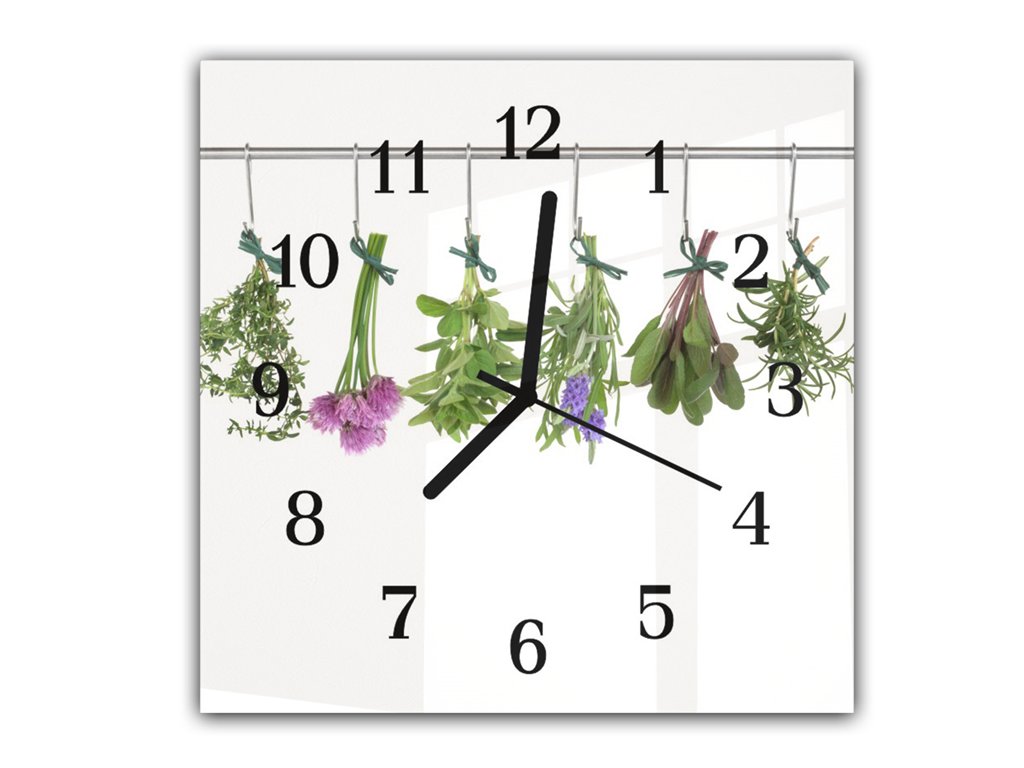 Nástěnné hodiny 30x30cm čerstvé bylinky na tyči k sušení