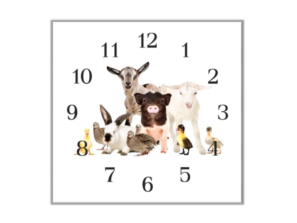 Nástěnné hodiny 30x30cm domácí zvířata, farma