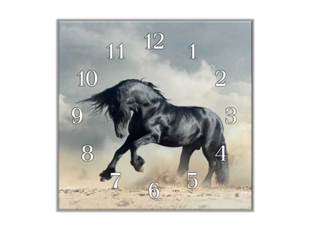 Nástěnné hodiny 30x30cm fríský kůň v prachu písku