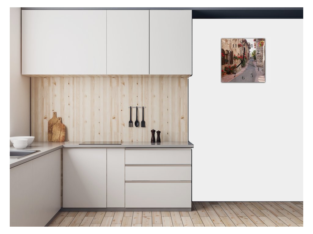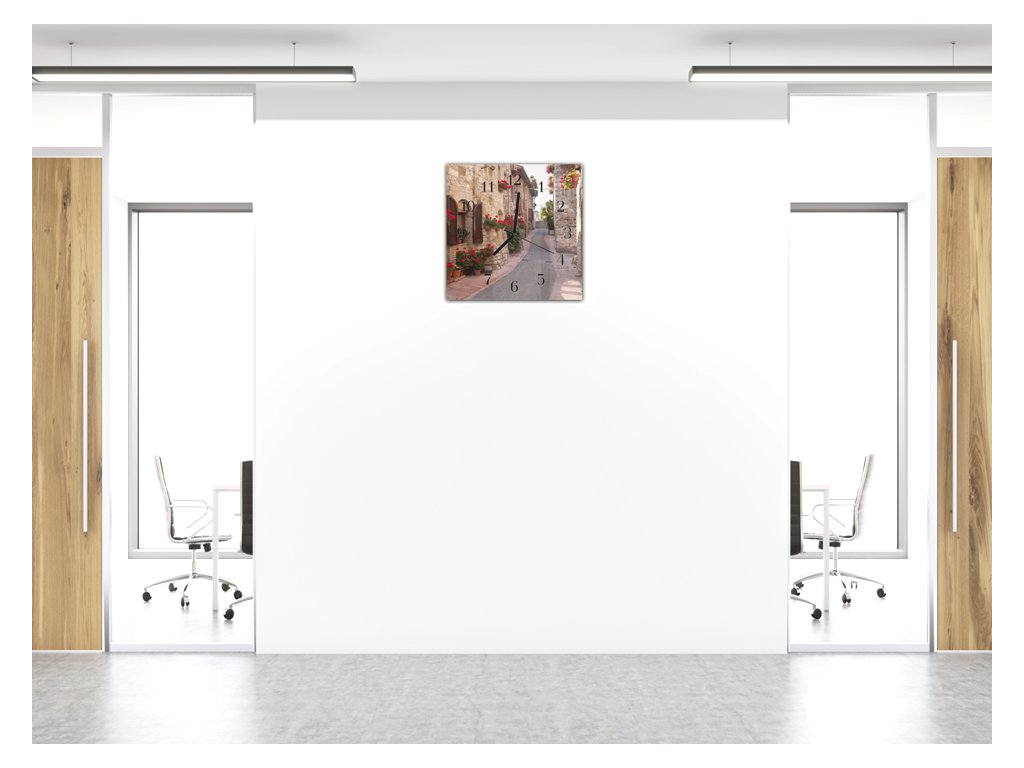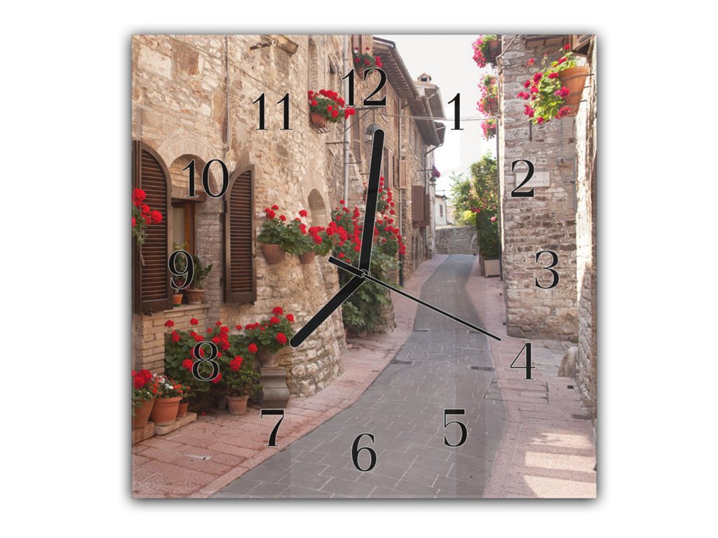 Nástěnné hodiny 30x30cm Italské město Assisi a květinová ulička