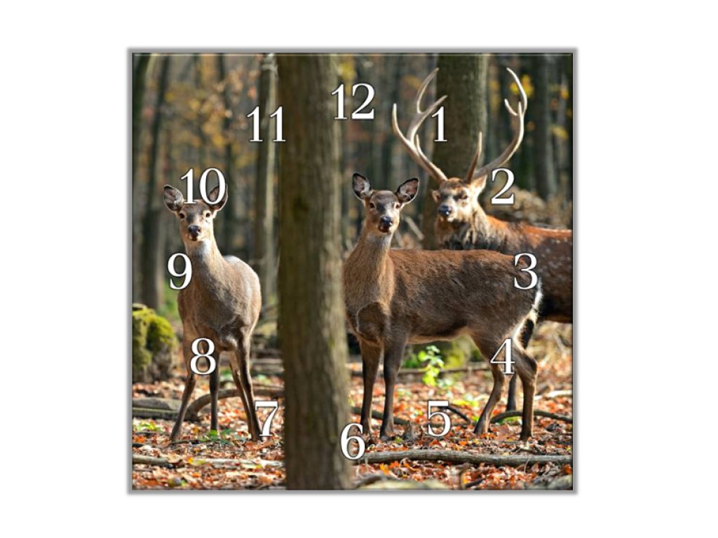 Nástěnné hodiny 30x30cm jelen a laně v lese