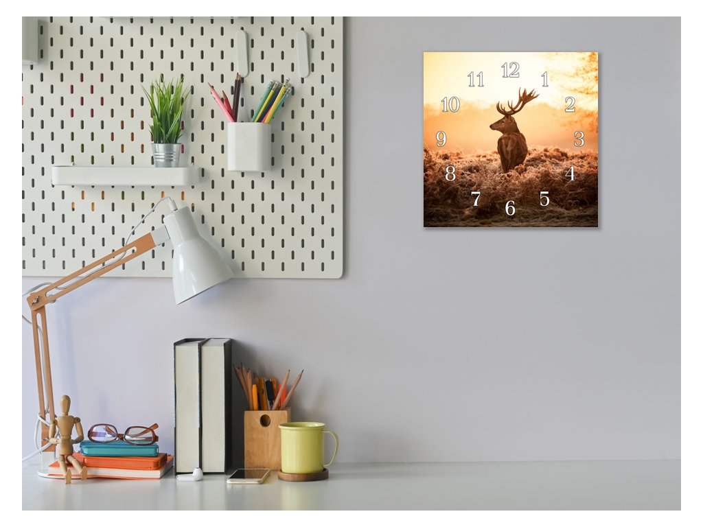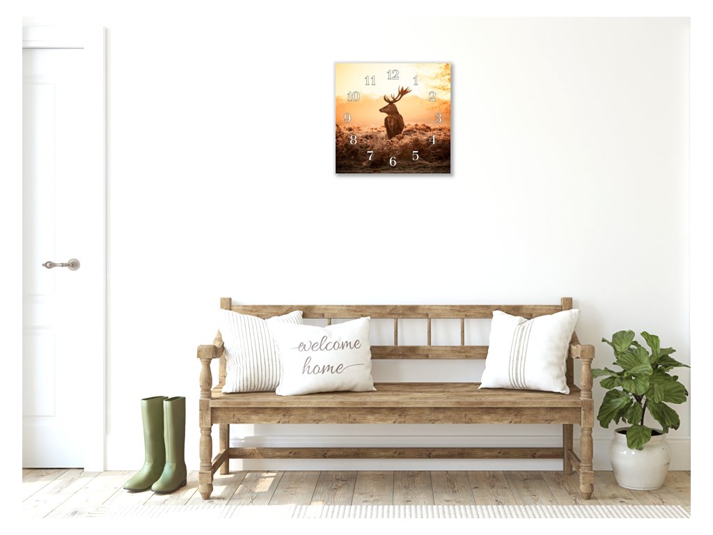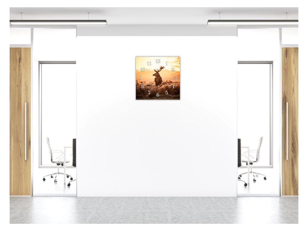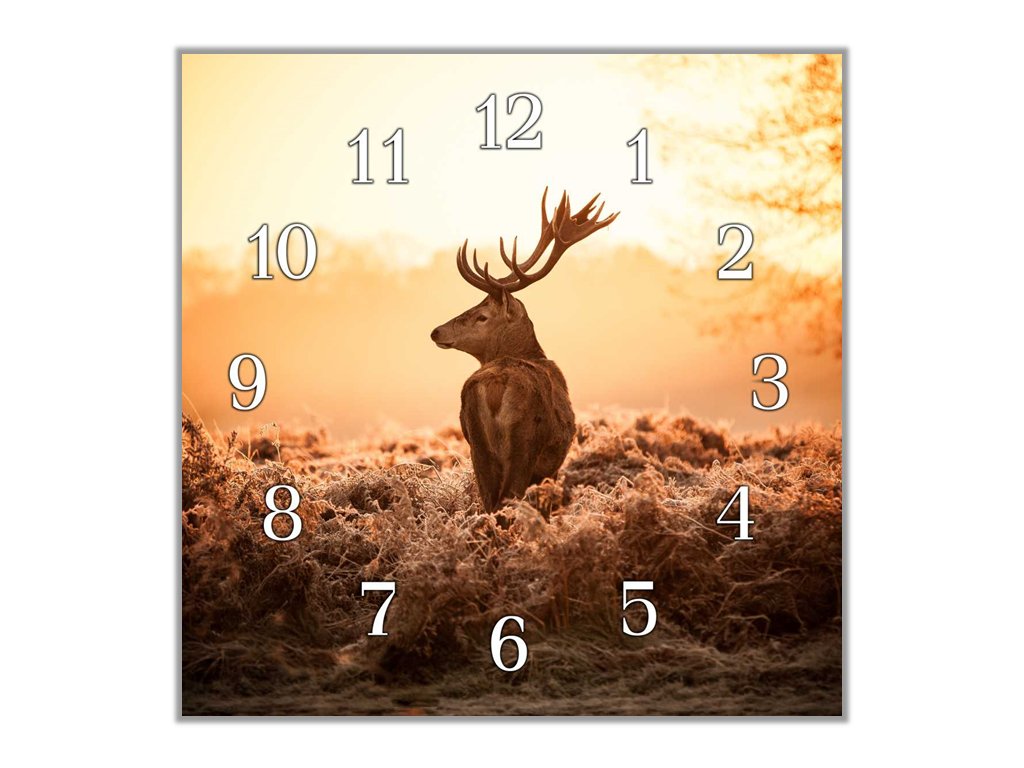 Nástěnné hodiny 30x30cm jelen v západu slunce