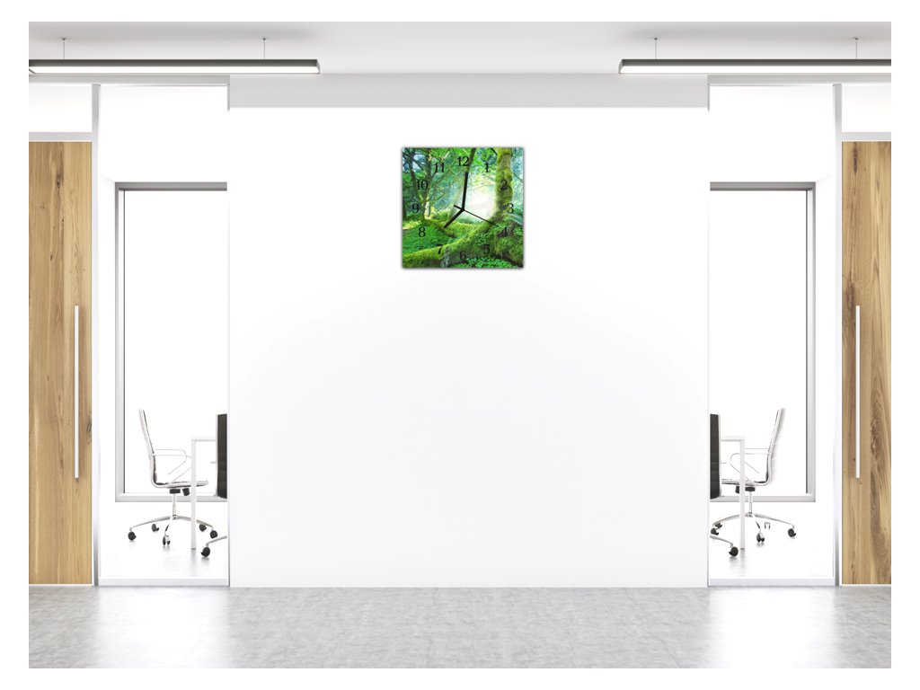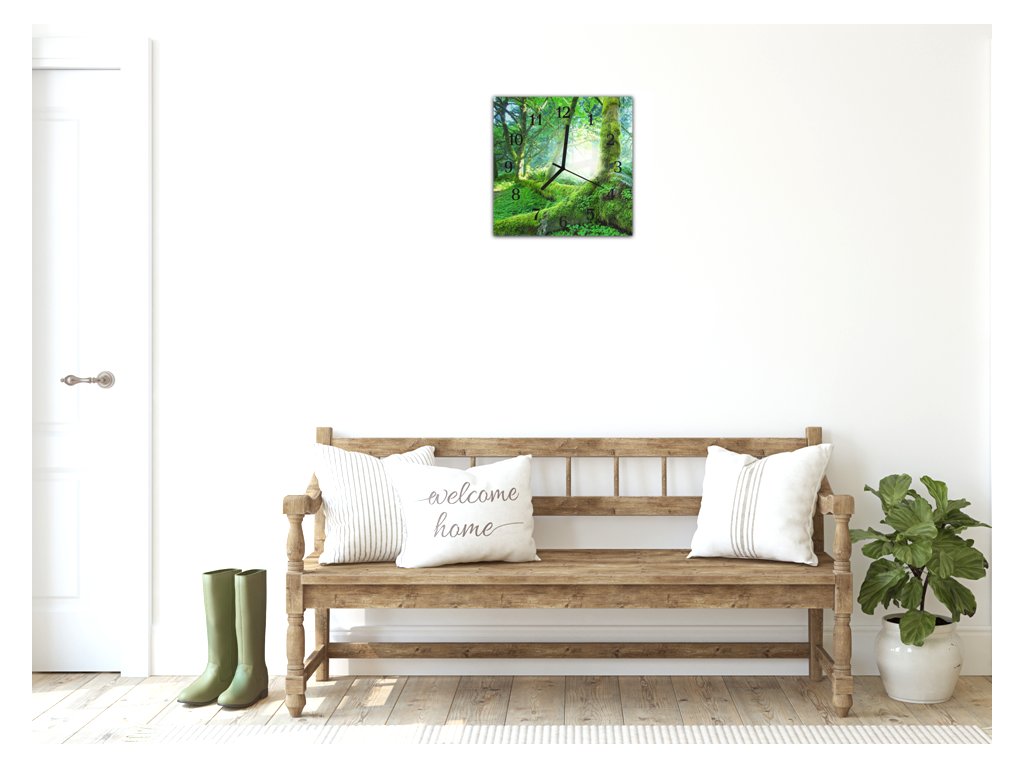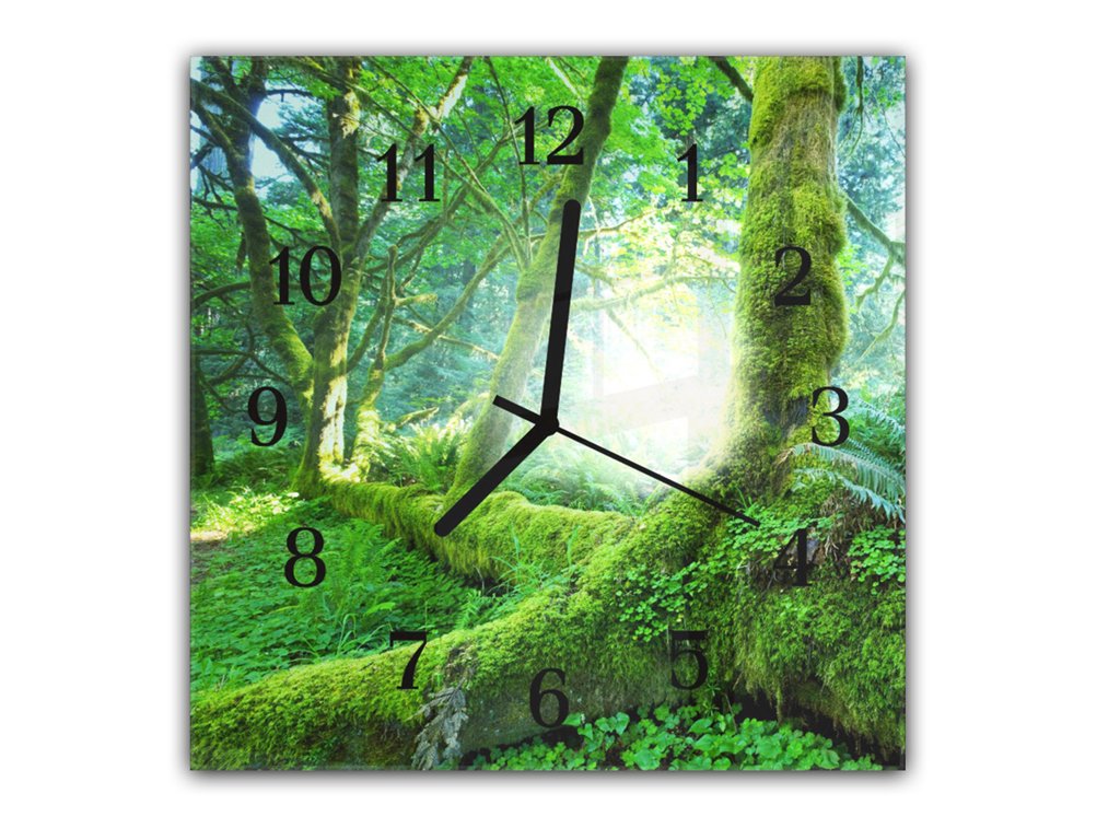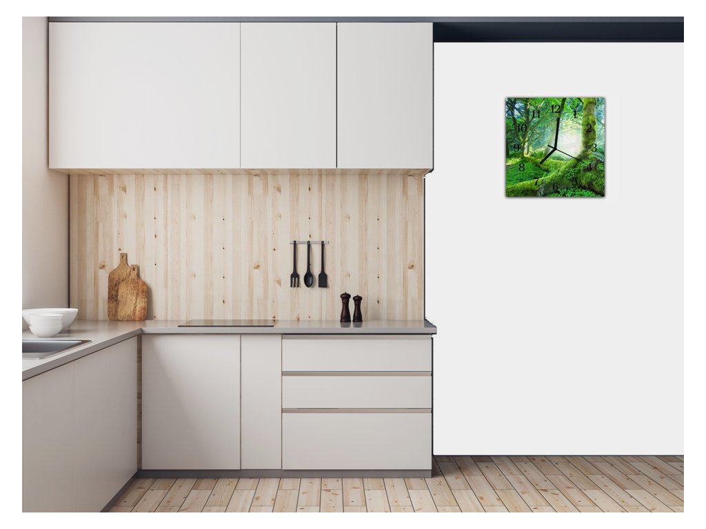 Nástěnné hodiny 30x30cm krásný zelený pohádkový les