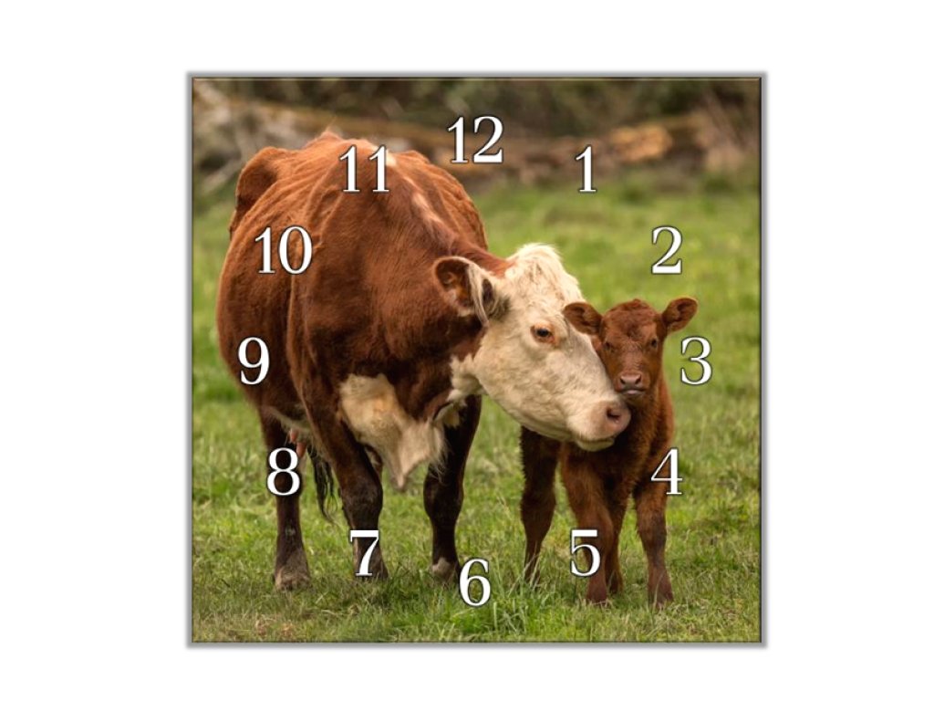 Nástěnné hodiny 30x30cm kráva a tele na pastvě