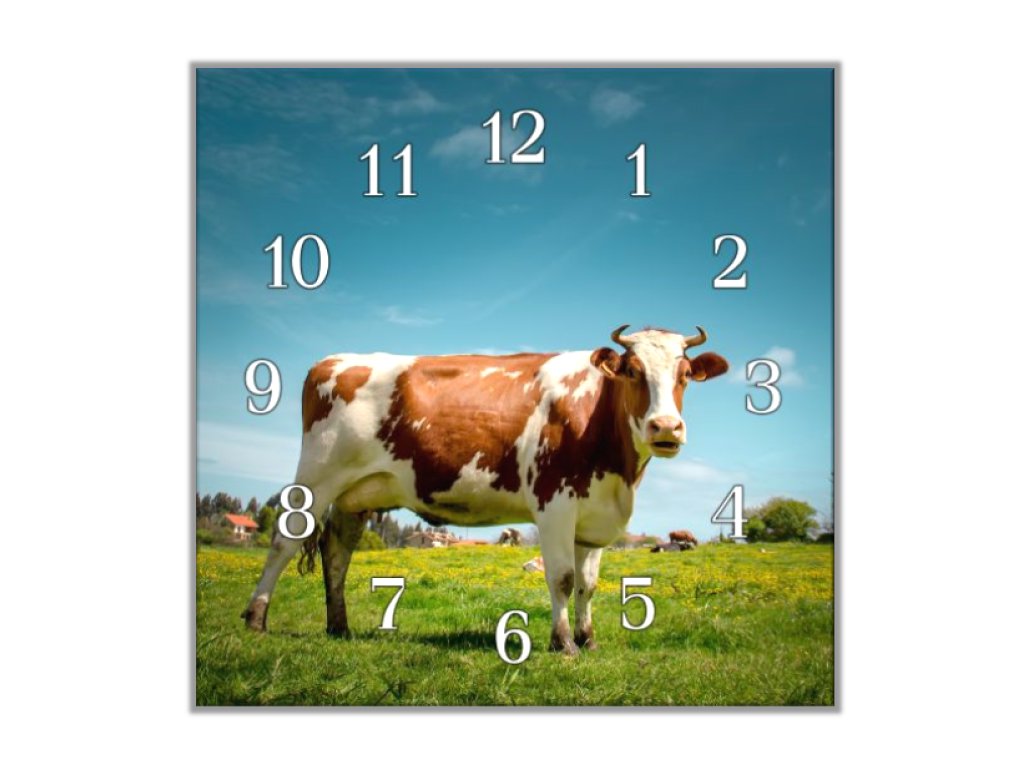 Nástěnné hodiny 30x30cm kráva na pastvě