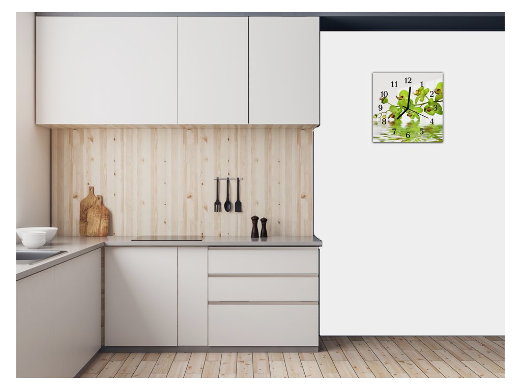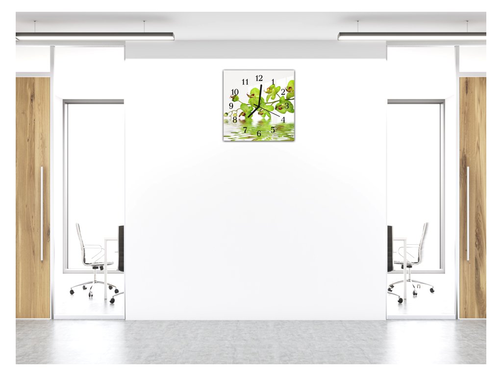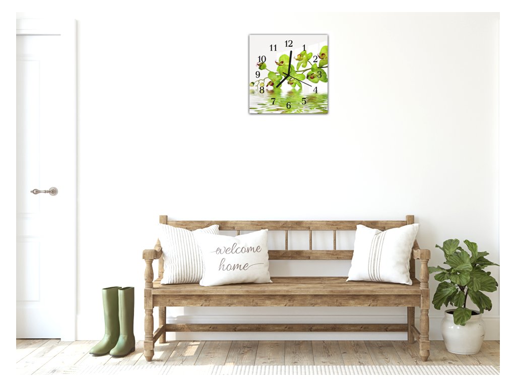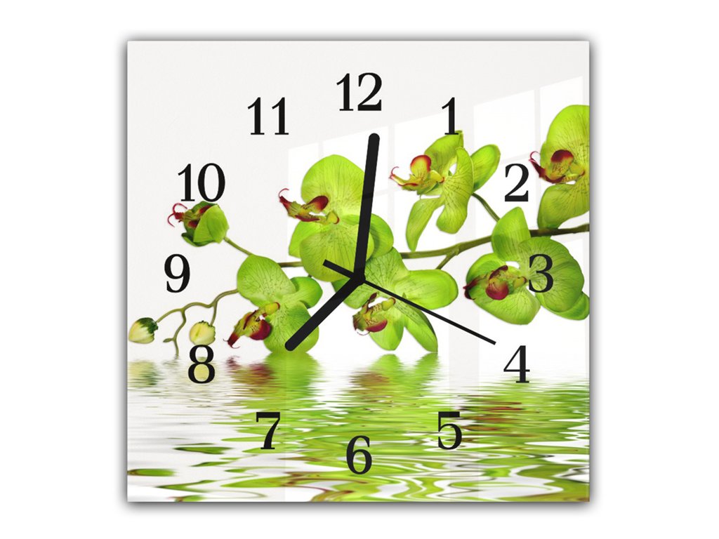Nástěnné hodiny 30x30cm květy žluté orchideje nad hladinou