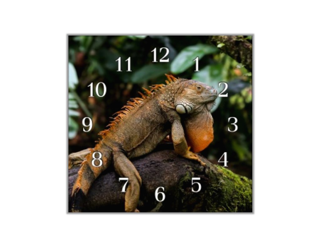 Nástěnné hodiny 30x30cm leguán na kmeni