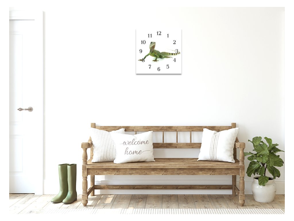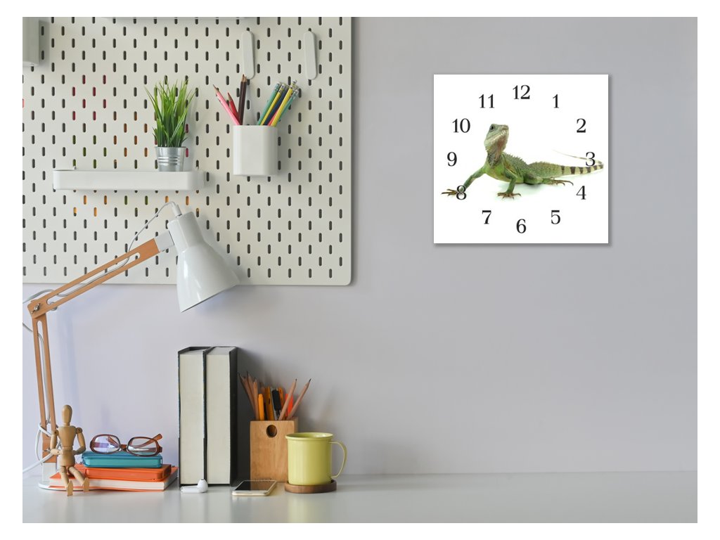 Nástěnné hodiny 30x30cm leguán zelený