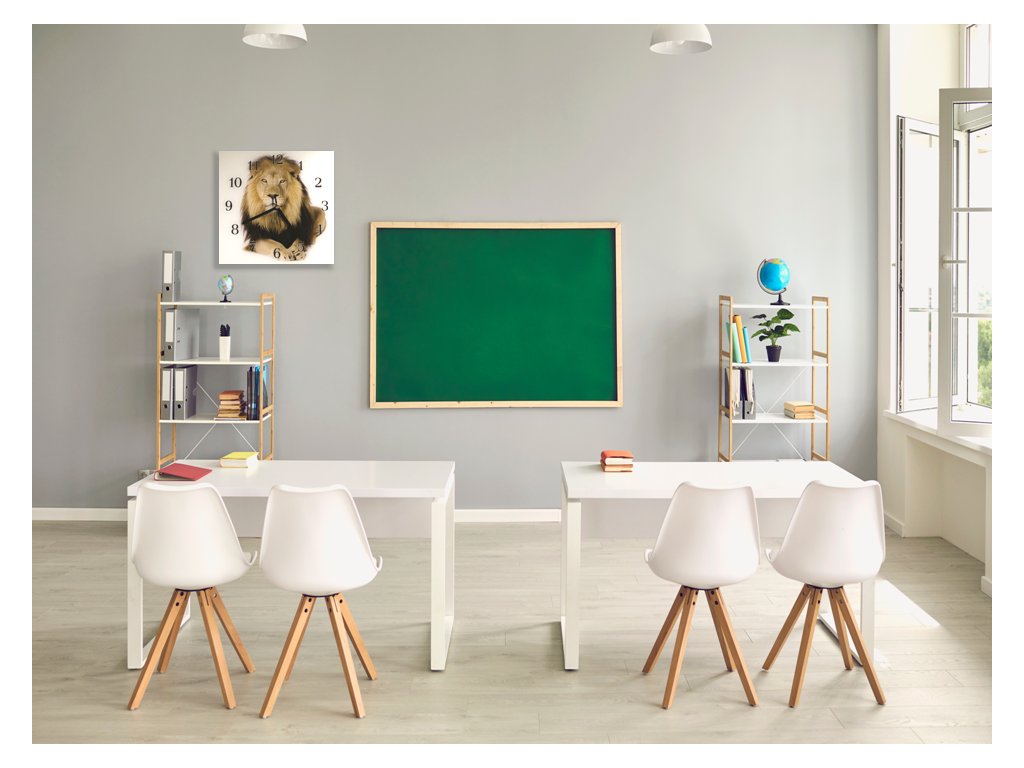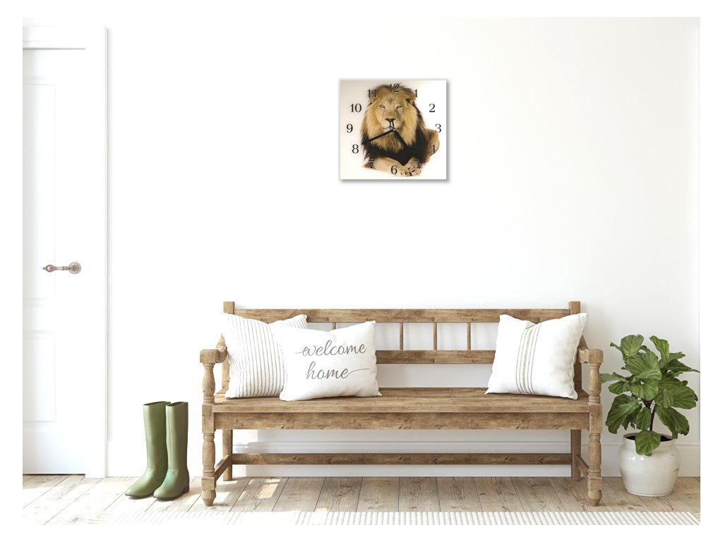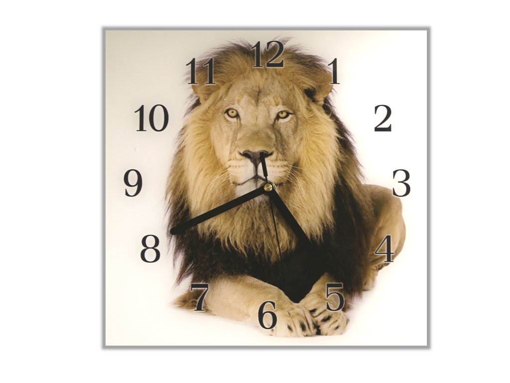 Nástěnné hodiny 30x30cm lev zlatý na bílém pozadí