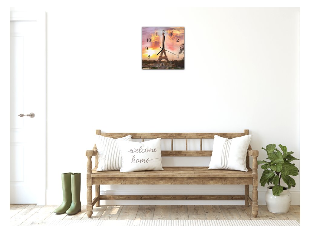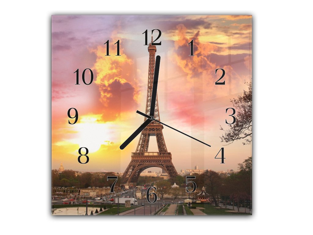 Nástěnné hodiny 30x30cm město Paříž a Eiffelová věž