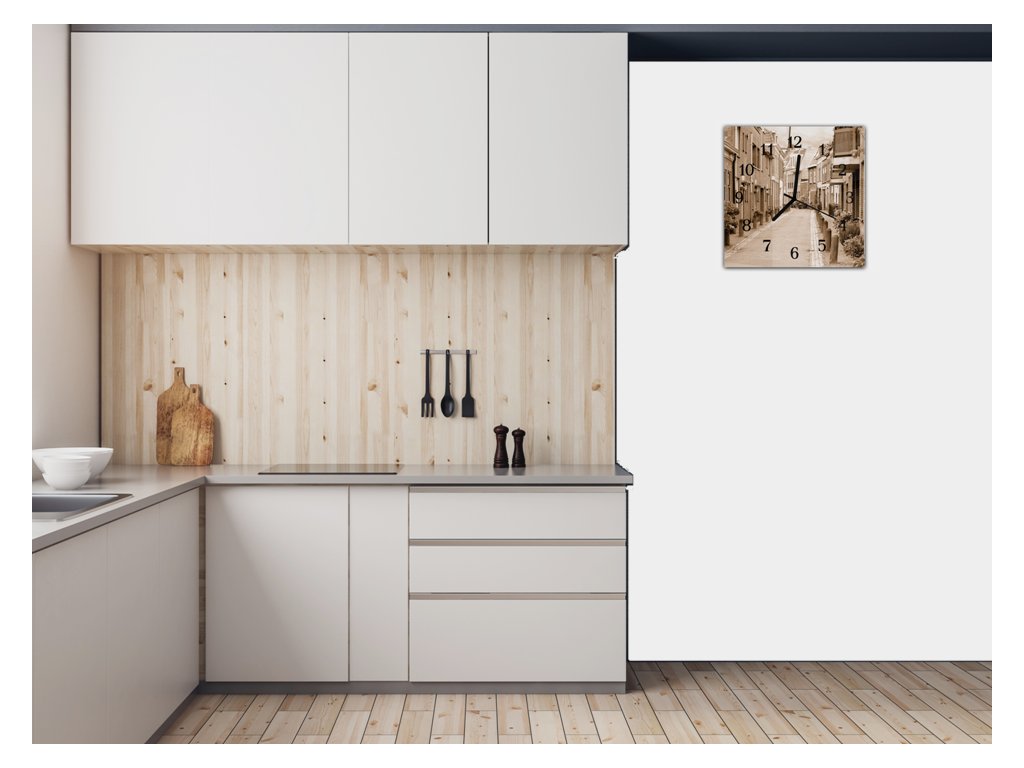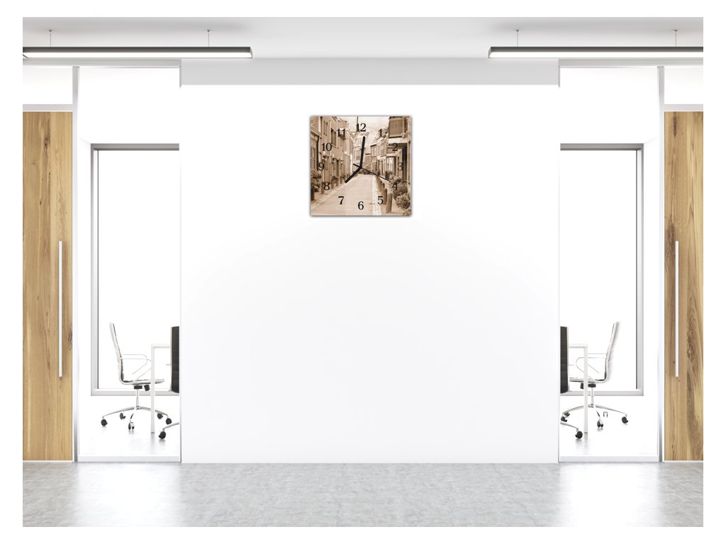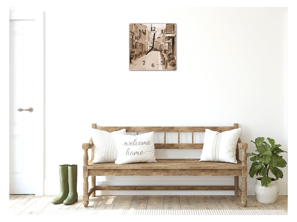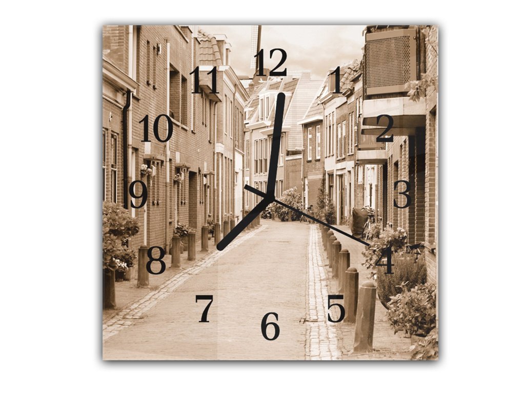 Nástěnné hodiny 30x30cm městská klidná boční ulička