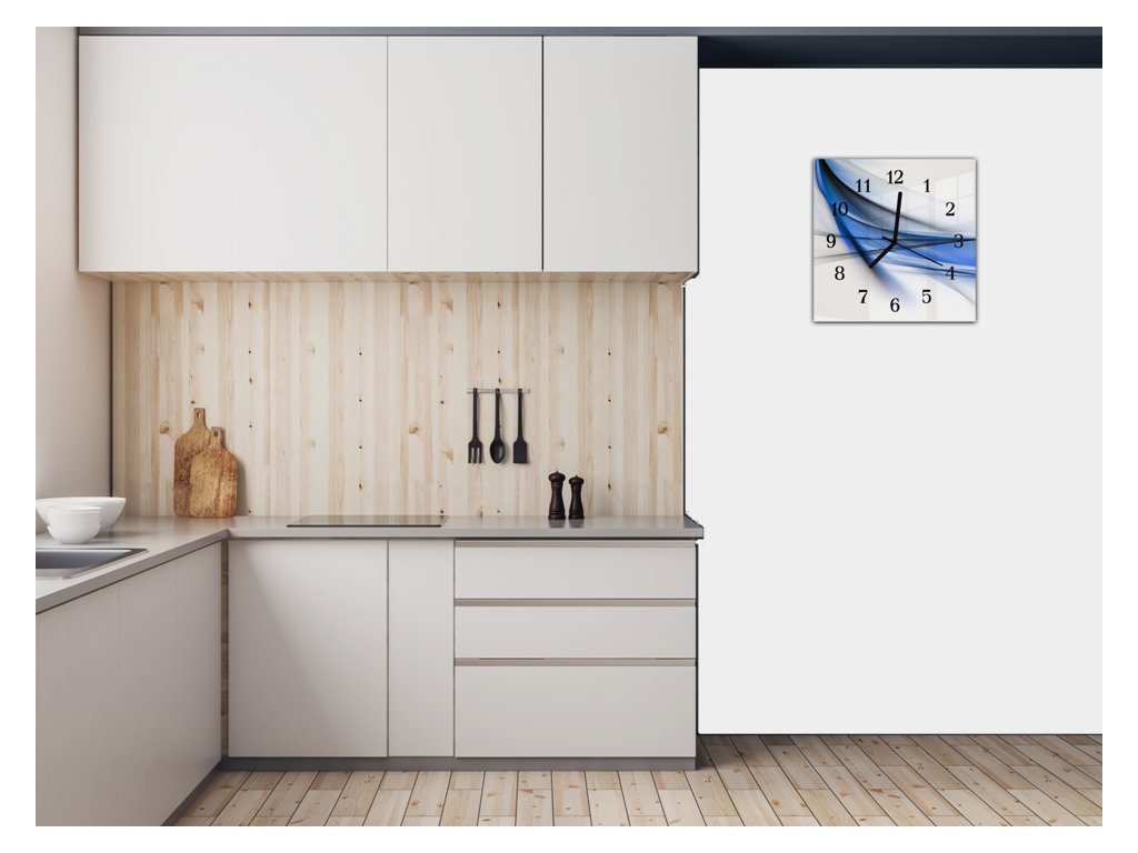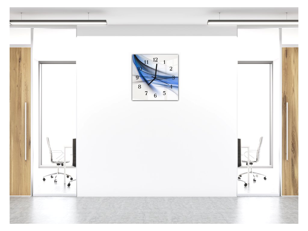 Nástěnné hodiny 30x30cm modrá abstraktní vlna na bílém pozadí