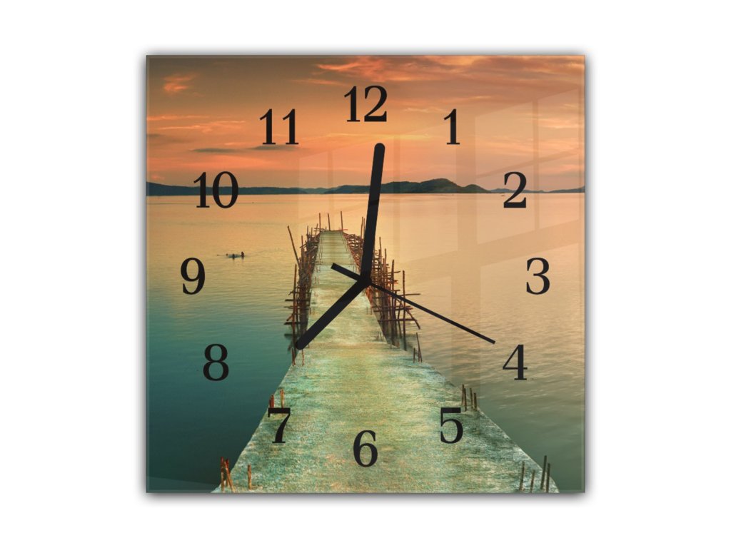 Nástěnné hodiny 30x30cm molo do moře v západu