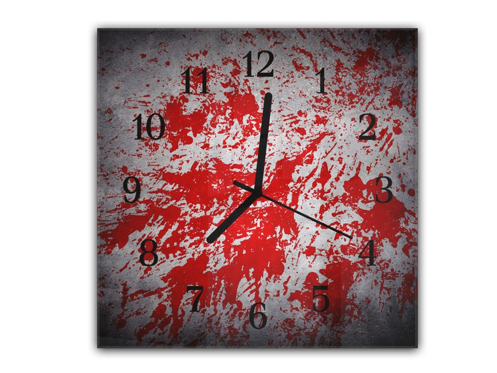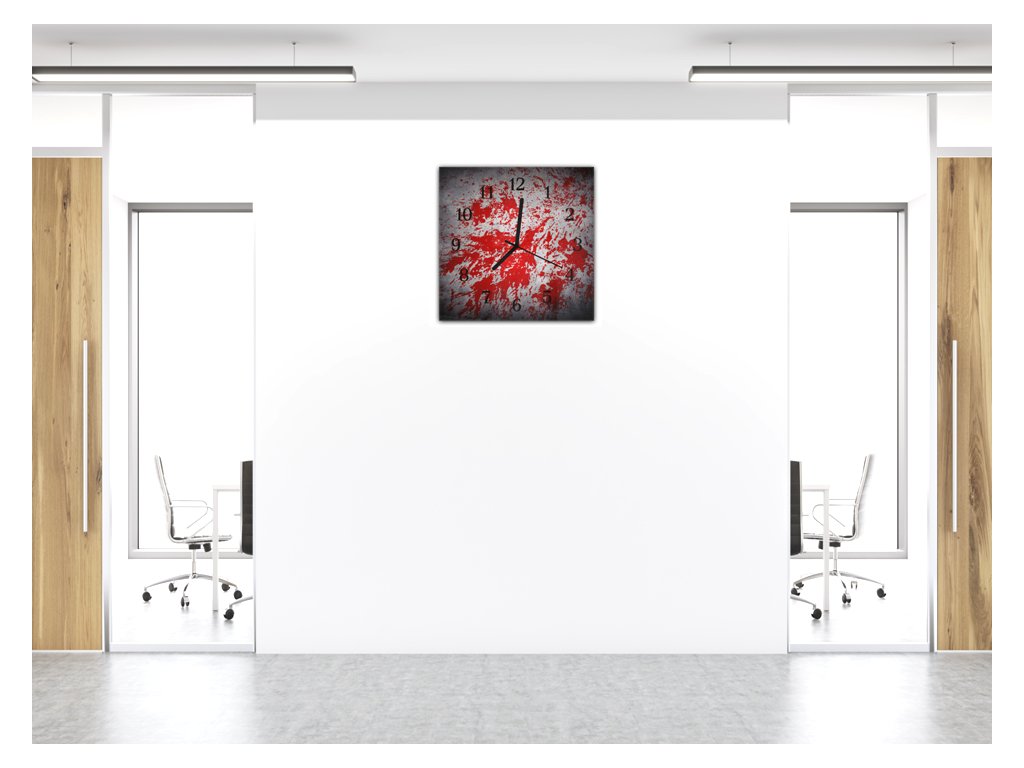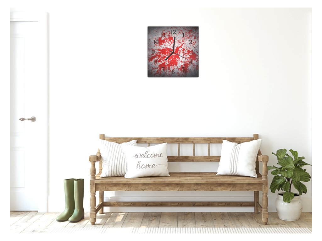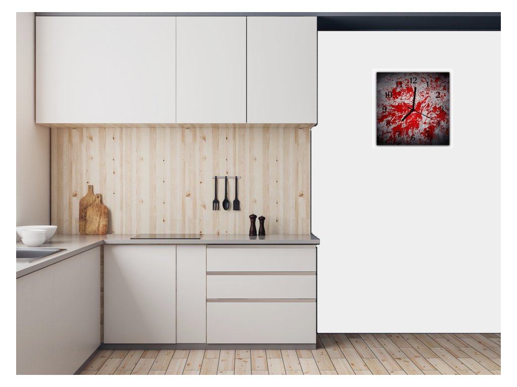 Nástěnné hodiny 30x30cm na šedém červený střik barvy