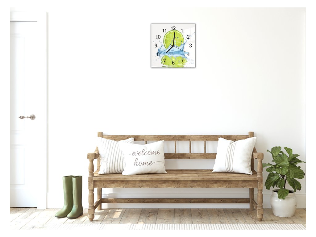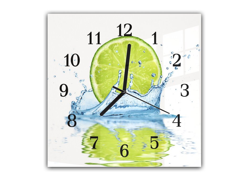 Nástěnné hodiny 30x30cm odraz poloviny limetky v hladině