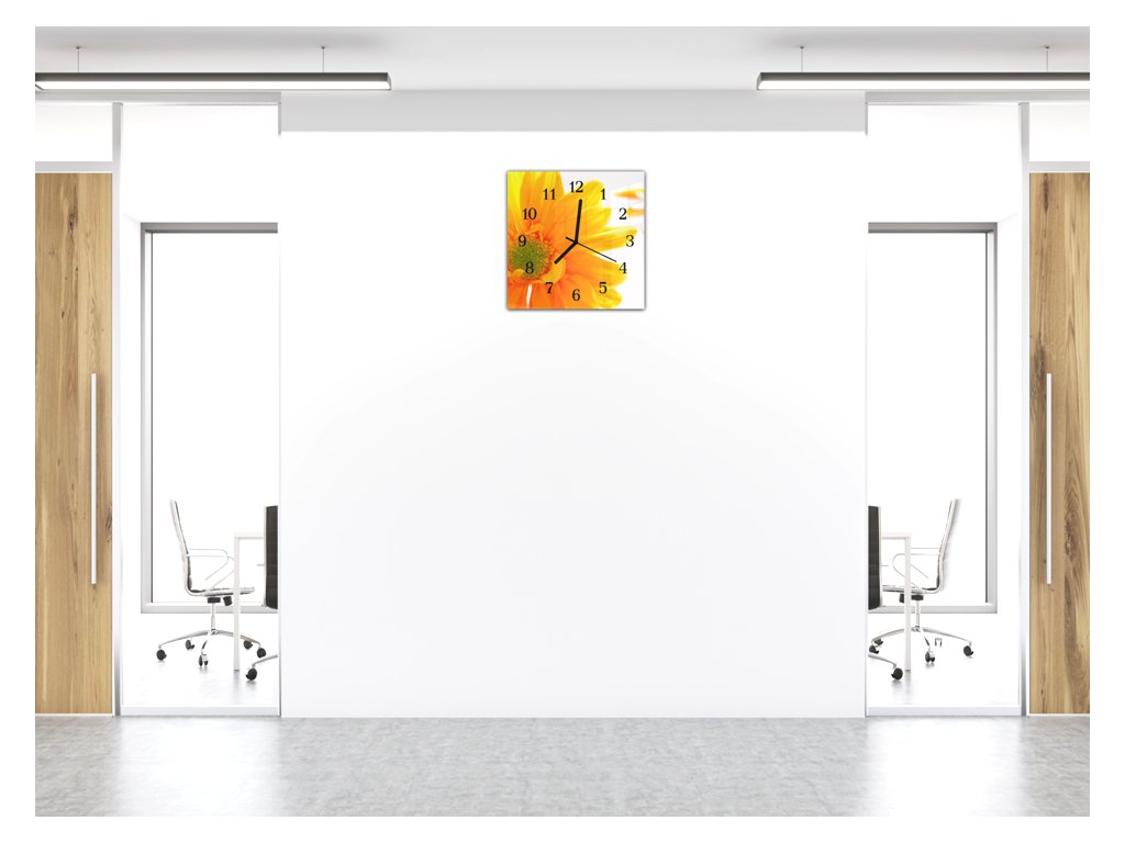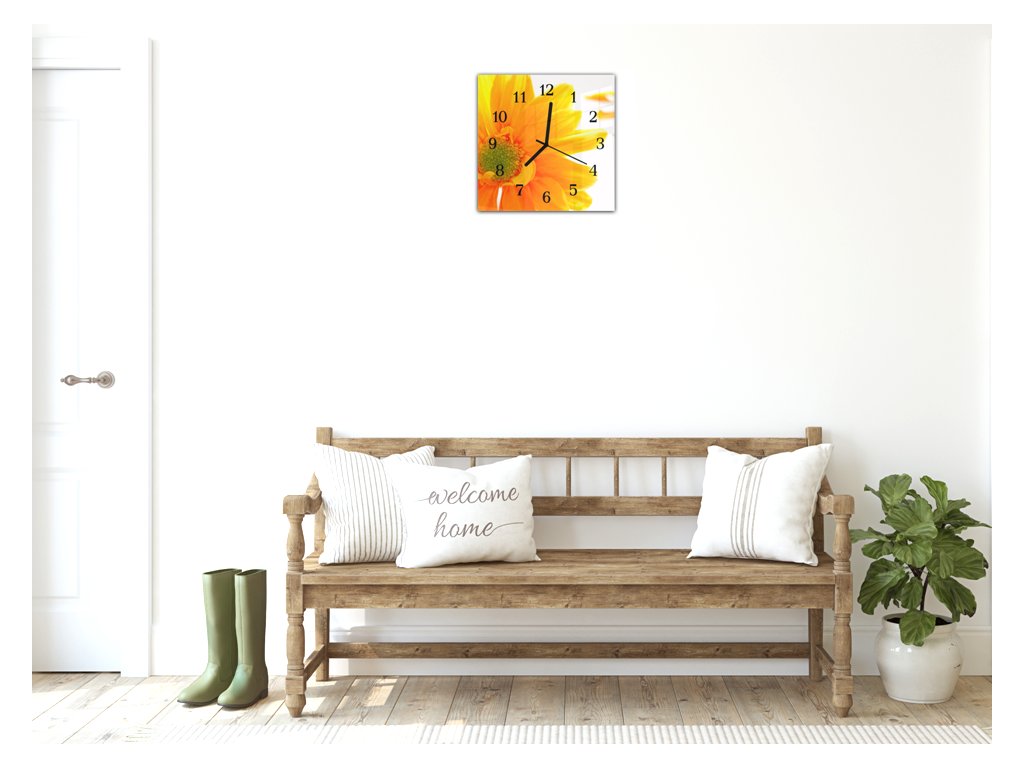 Nástěnné hodiny 30x30cm ostře žlutý květ chryzantémy v detailu