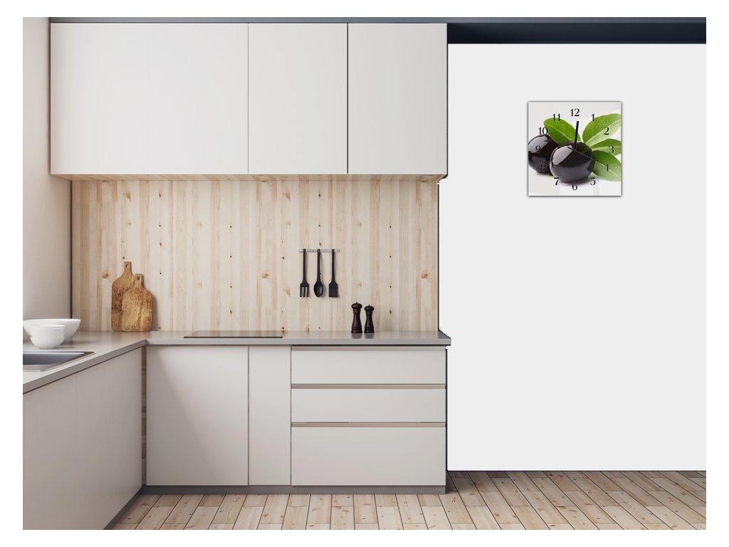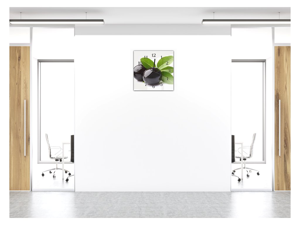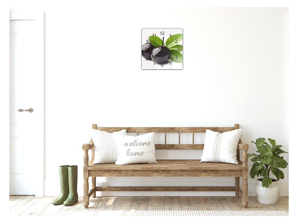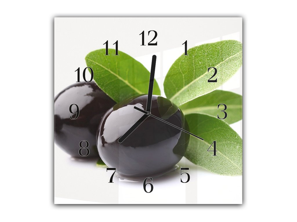 Nástěnné hodiny 30x30cm ovoce černé olivy na bílém podkladu