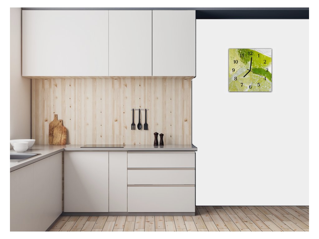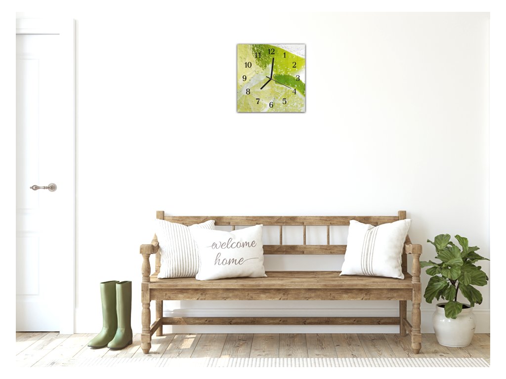 Nástěnné hodiny 30x30cm ovoce limetka ve vodě