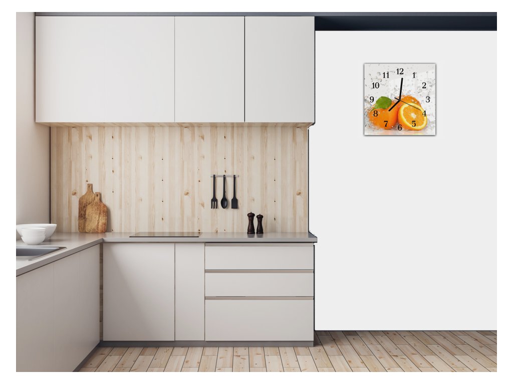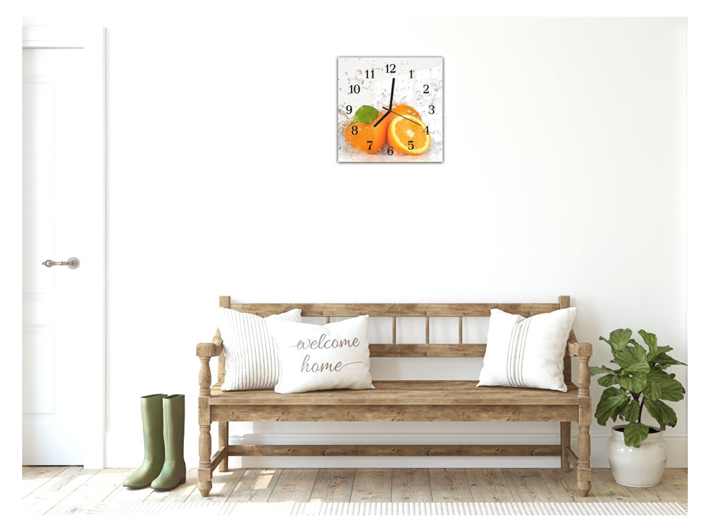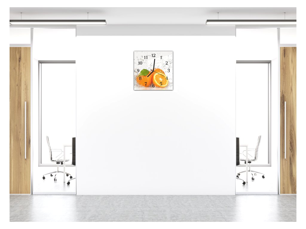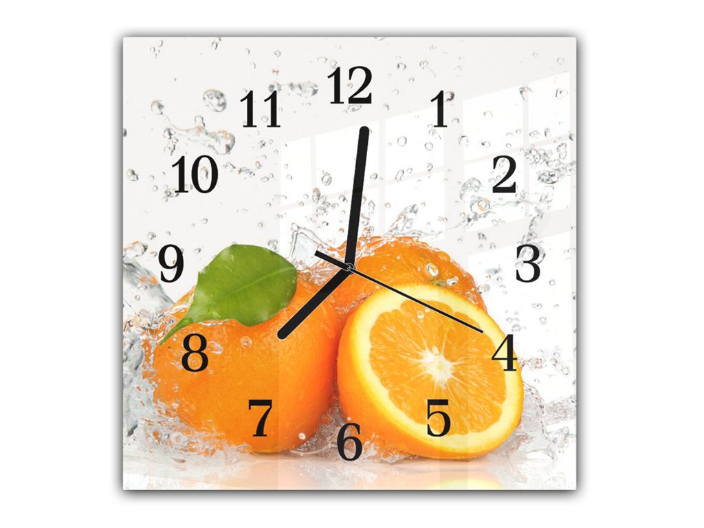 Nástěnné hodiny 30x30cm ovoce pomeranče ve vodě na bílém pozadí