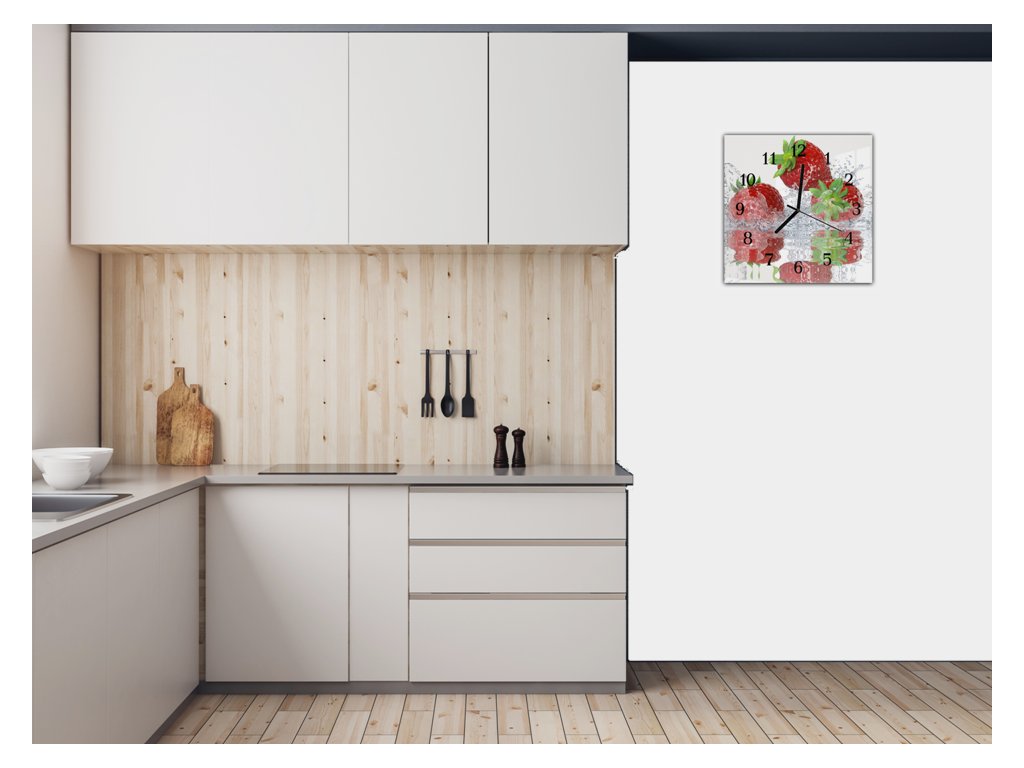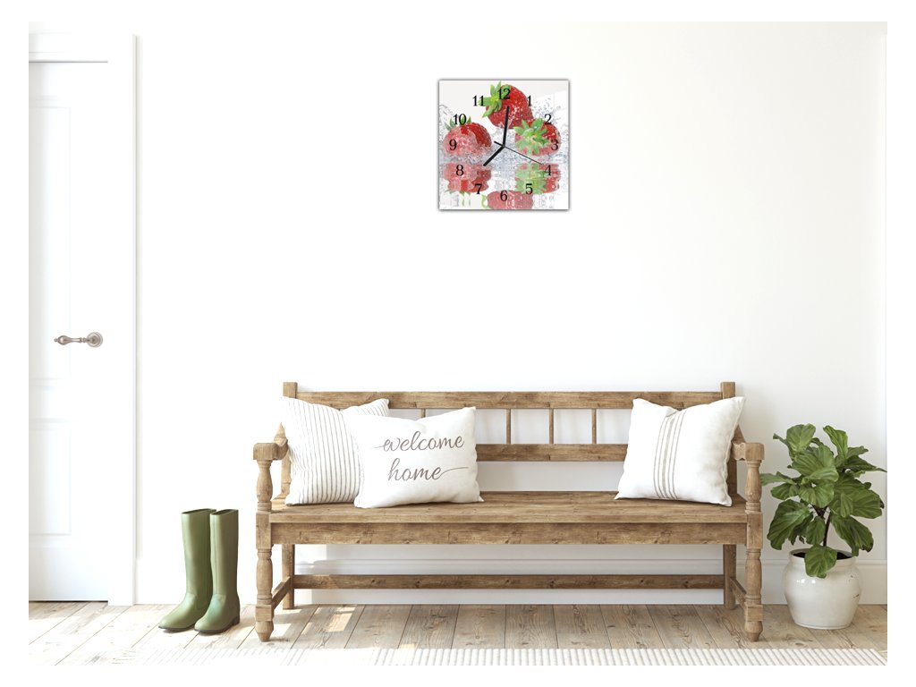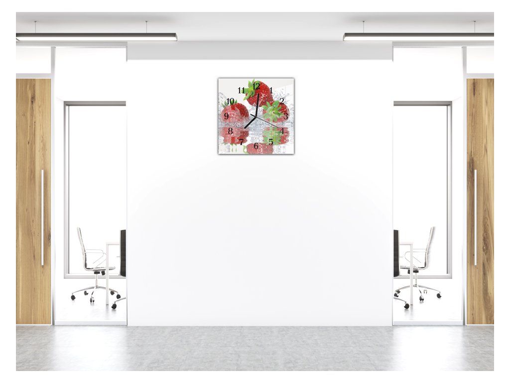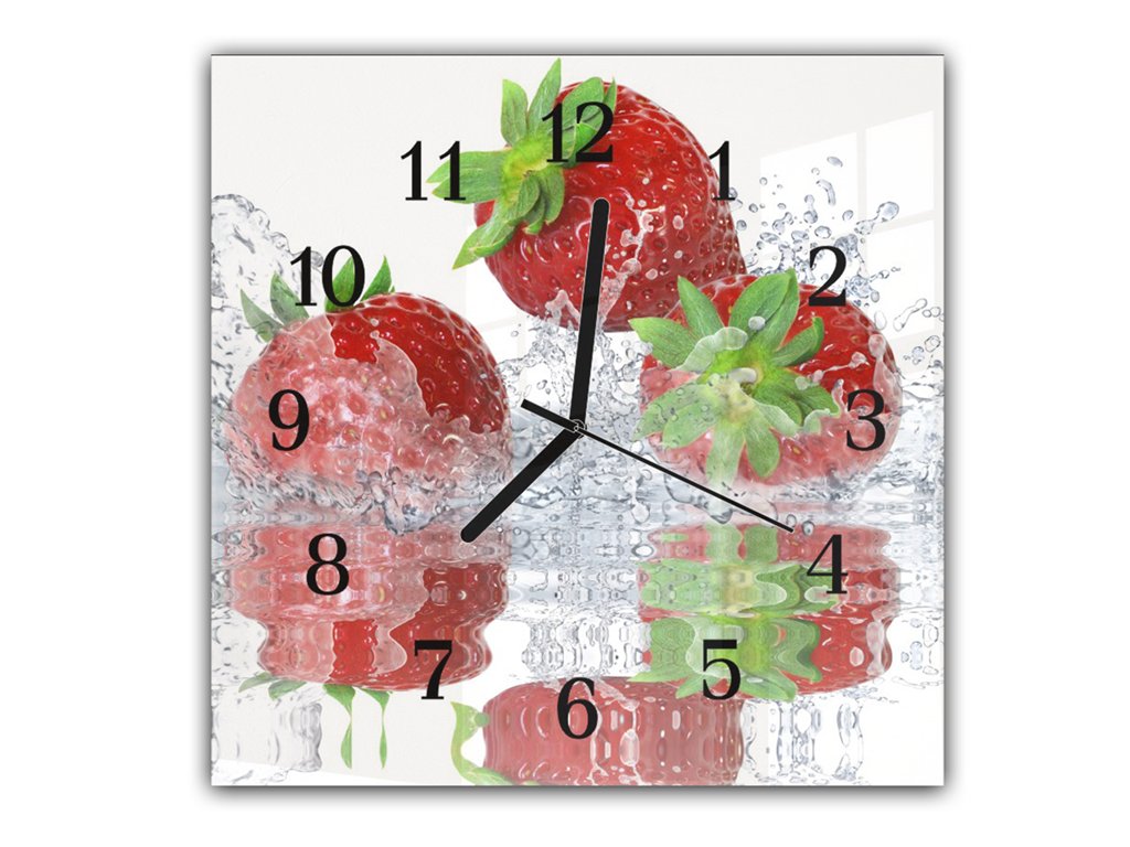 Nástěnné hodiny 30x30cm ovoce tři jahody ve vodě