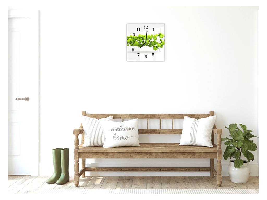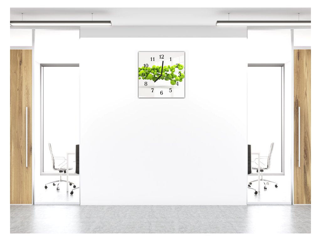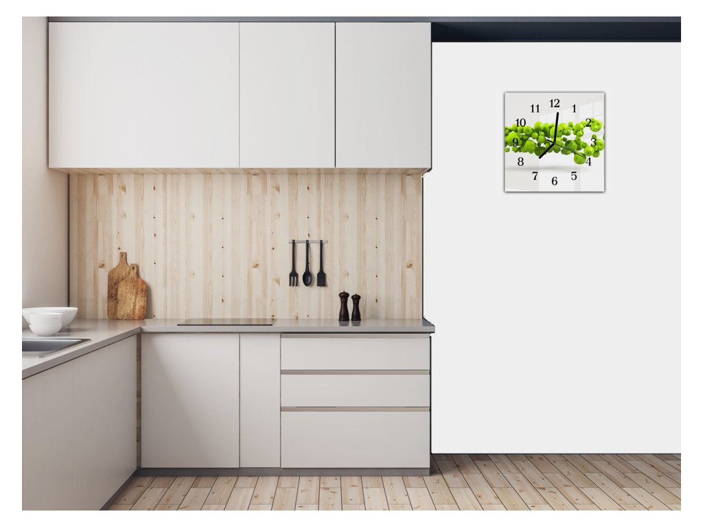 Nástěnné hodiny 30x30cm ovoce zelené jablka bílý podklad