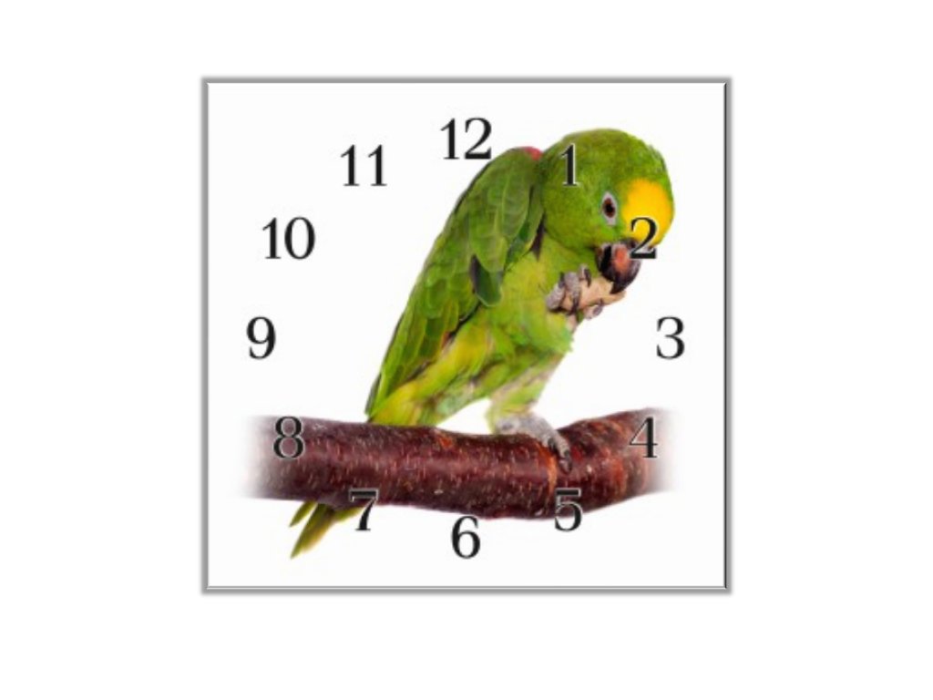 Nástěnné hodiny 30x30cm papoušek amazoňan