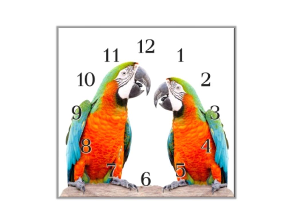 Nástěnné hodiny 30x30cm papoušek ara pár